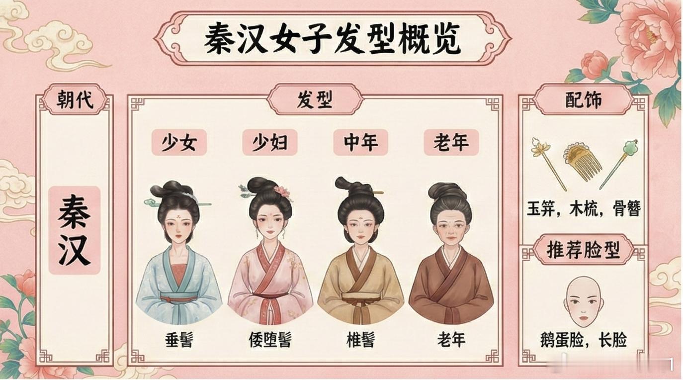 中国历代女子发型图鉴,老祖宗的审美绝了!🏮 秦汉:古朴大气,端庄Slay全场秦汉姐姐们走的是妥妥的“大女主”路线!不搞繁杂装饰,讲究整体气场。最具代表性的【垂云髻】☁️,发髻在身后似垂非垂,线条流畅,自带不怒自威的高级感。🎀点睛之笔:温润玉笄、极简木梳,低调奢华有内涵。🌸 隋唐:雍容华贵,人间富贵花本花大唐盛世,审美核心就是“自信”!🔥发型必须支棱起来,【高髻】、【牡丹头】是标配,主打“高、大、满”,视觉冲击力MAX!显脸小又贵气。🎀点睛之笔:金钗步摇戴起来,大朵牡丹🌺往头上堆,气势这块拿捏得死死的!🎋 宋朝:清冷雅致,极简风鼻祖审美大转弯!宋代姐姐偏爱清冷文艺风🍵。发型从唐代的圆润变为修长高耸的【朝天髻】,视觉上拉长比例,显得人高挑清秀,有一种淡然的疏离感。🎀点睛之笔:珍珠发簪、精致小冠是心头好,讲究“点到为止”的精致✨。🏮 明朝:端庄秀丽,细节控的胜利关键词:规整、层次、全套装备明代讲究“规矩美”,继承了宋的秀丽,又多了几分世俗的端庄。代表性的【狄髻】(䯼髻)集中在头顶,非常考验发量(不是)。🎀点睛之笔:重头戏是整套的【头面】!金银首饰搭配掩鬓,富贵又稳重,妥妥的大户人家主母风范🏡。🦋 清朝:满汉融合,宫廷风巅峰清宫剧同款来了!满族特色发型辨识度极高。从早期小巧的**【两把头】,到后期夸张的【大拉翅】**(旗头)👒,简直是物理增高神器,修饰头型一绝!🎀点睛之笔:点翠、大绒花、长流苏,走起路来摇曳生姿,氛围感拉满!💯💬这波穿越之旅,你最想回到哪个朝代?我先投大唐一票,感觉能实现“首饰自由”!🙋♀️快在评论区告诉我你的pick,顺便汉服妆造 中国传统文化