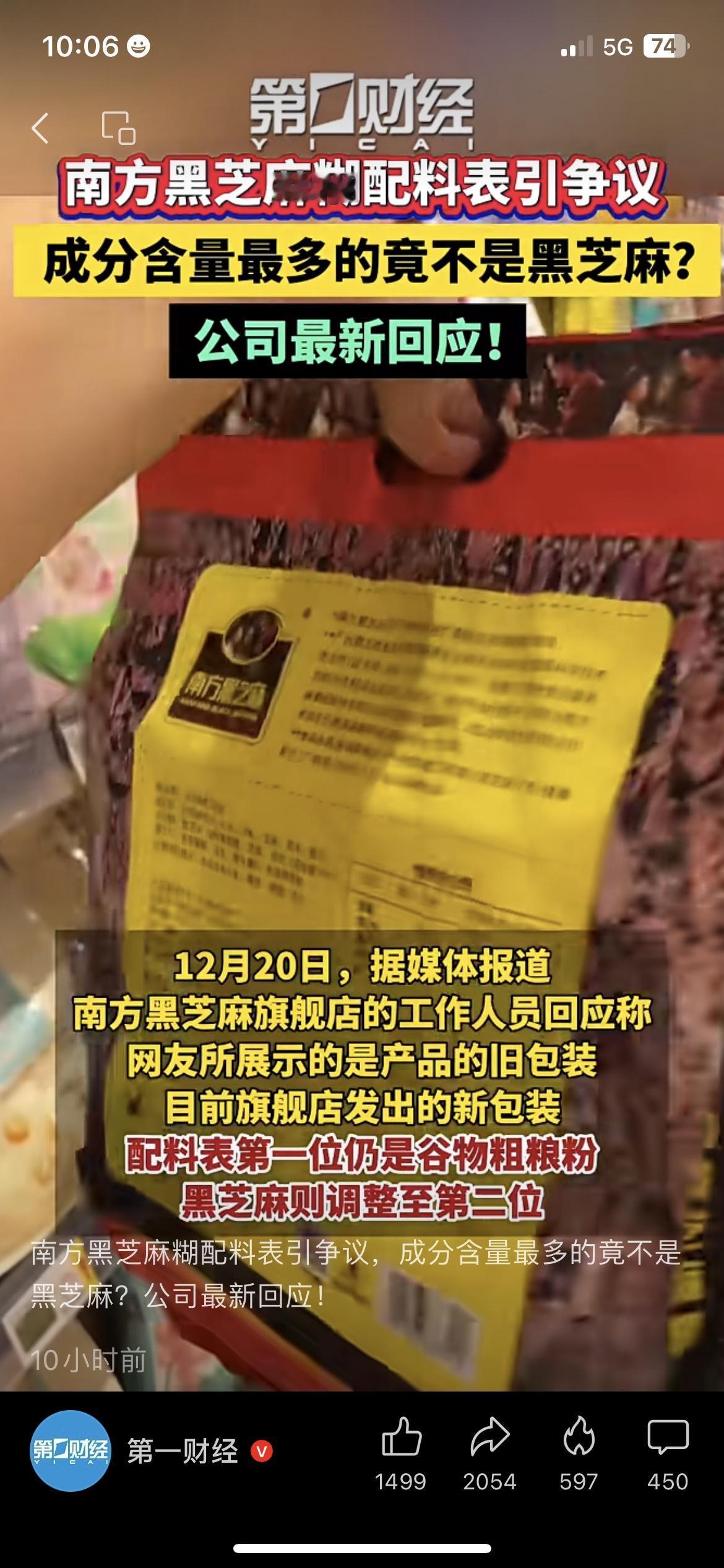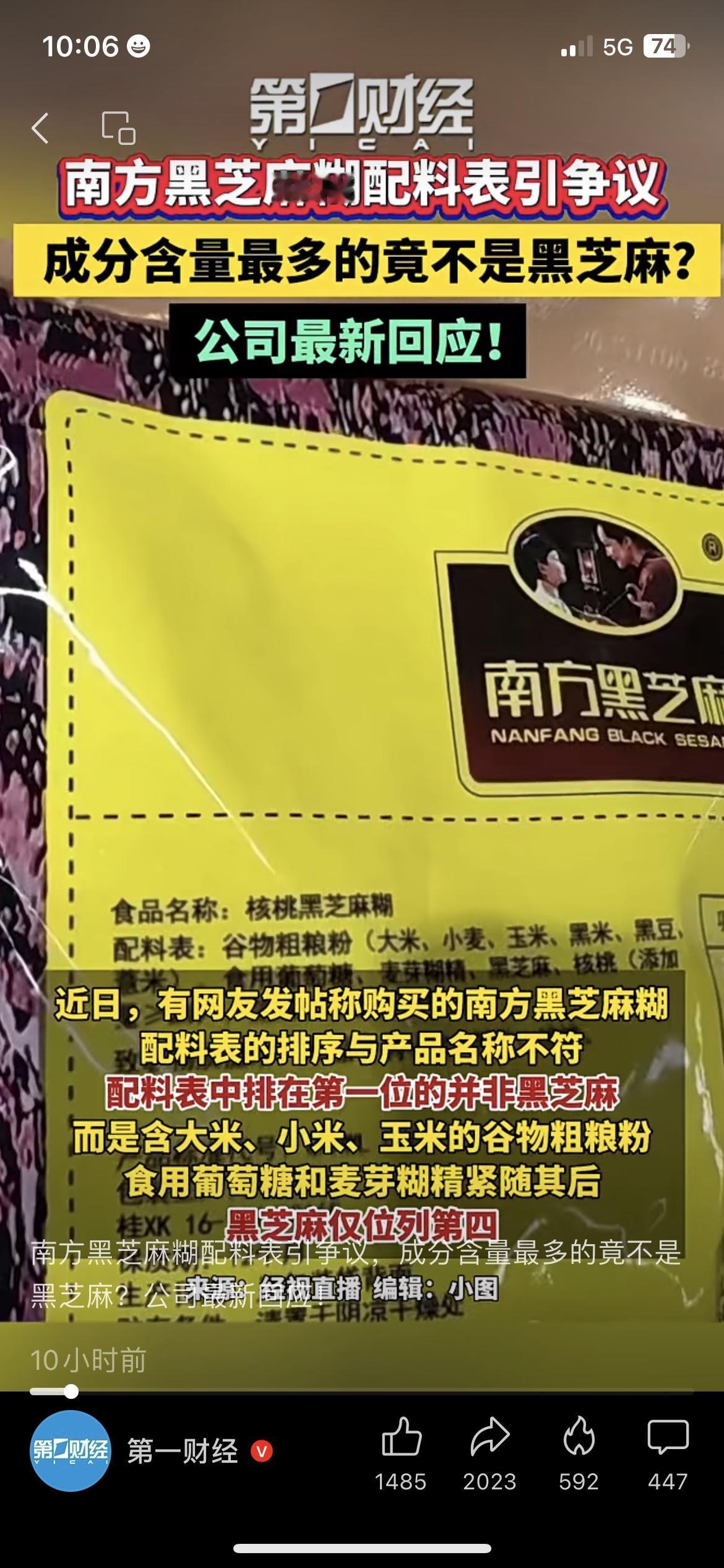 😱南方黑芝麻糊配料表翻车?黑芝麻竟不是第一位 天天喝的南方黑芝麻糊,居然藏着配料“小秘密”! 有网友晒出配料表,谷物粗粮粉排在第一位,黑芝麻只在第四,新包装也只是把黑芝麻调到第二位,含量才18.5%(不过符合国标)。 早上冲黑芝麻糊当早餐的我,看到这消息瞬间懵了,原来喝的更多是谷物粉? 你买黑芝麻糊会特意看配料表的排序吗?黑芝麻粉的热量 黑芝麻配方