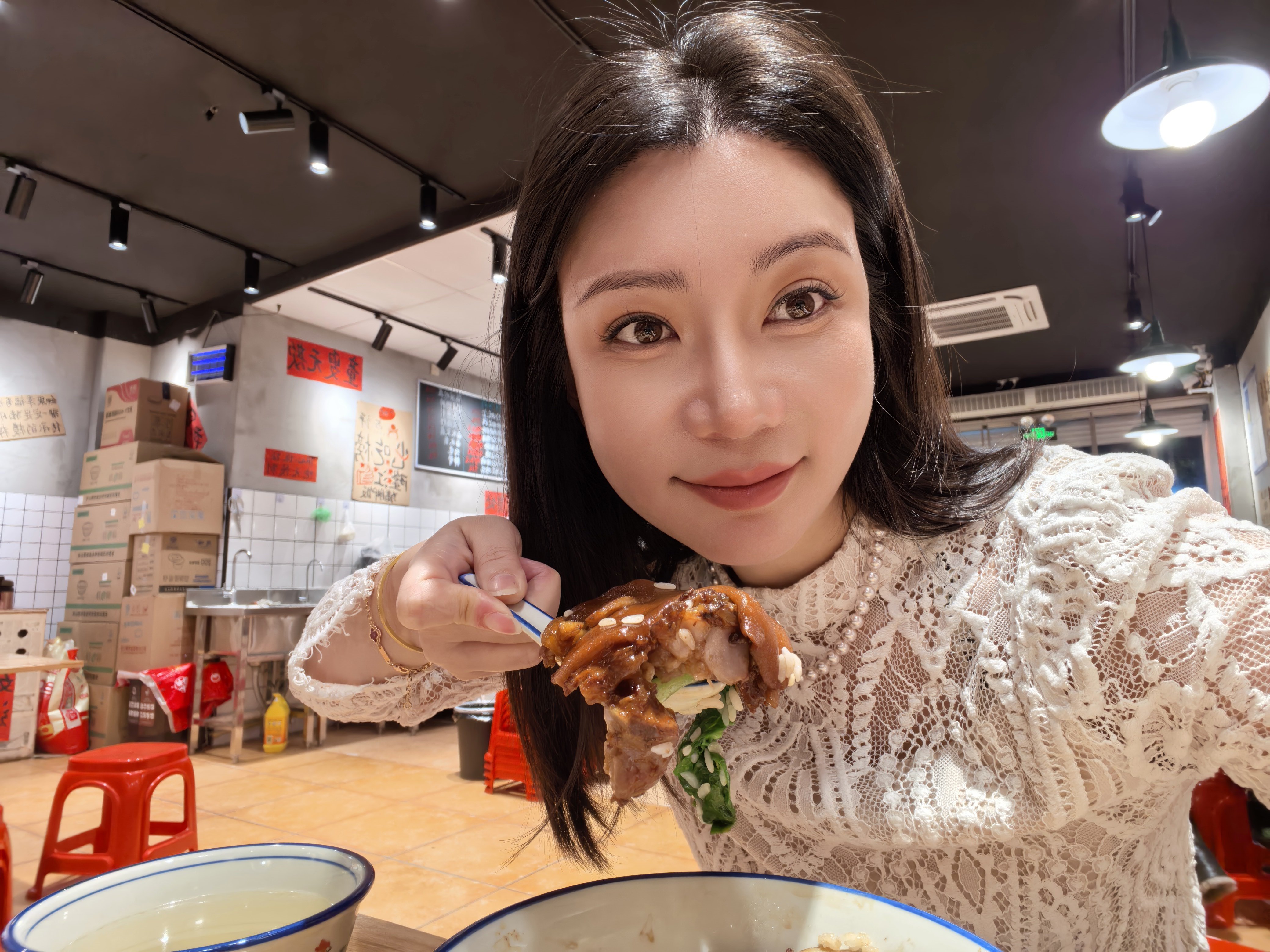 在上海也有这么正宗的猪脚饭!看看我用华为mate80promax 拍的,食物的色泽非常鲜艳,猪脚Q弹软糯,蹭到手上还有点黏黏的,可想而知它炖的是多么的入味儿了吧!我要的是四点金饭, 36块钱一份,他们家的米饭和小菜都是可以自己无限续的,还有免费的汤喝,我直接干了一大碗!华为mate80promax 不止后置牛,前置拍照也很优秀,动图非常自然,这我怎么能不爱呢!数码测评