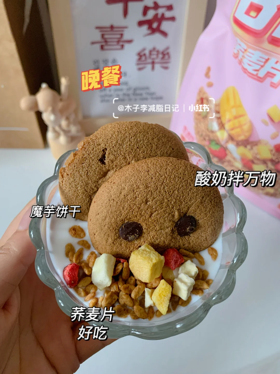 🥣晚餐:酸奶拌荞麦片➕魔芋饼干