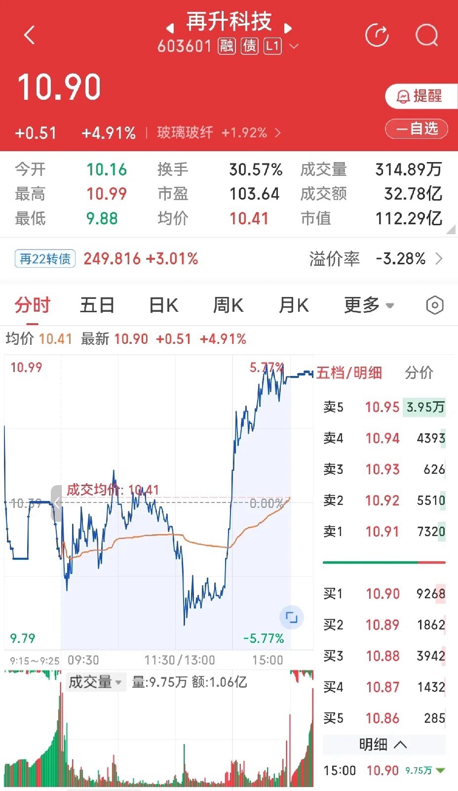好多人都关心再升科技的走势,我也一样。主力今天控制得蛮好,上天说了不超过5%的涨