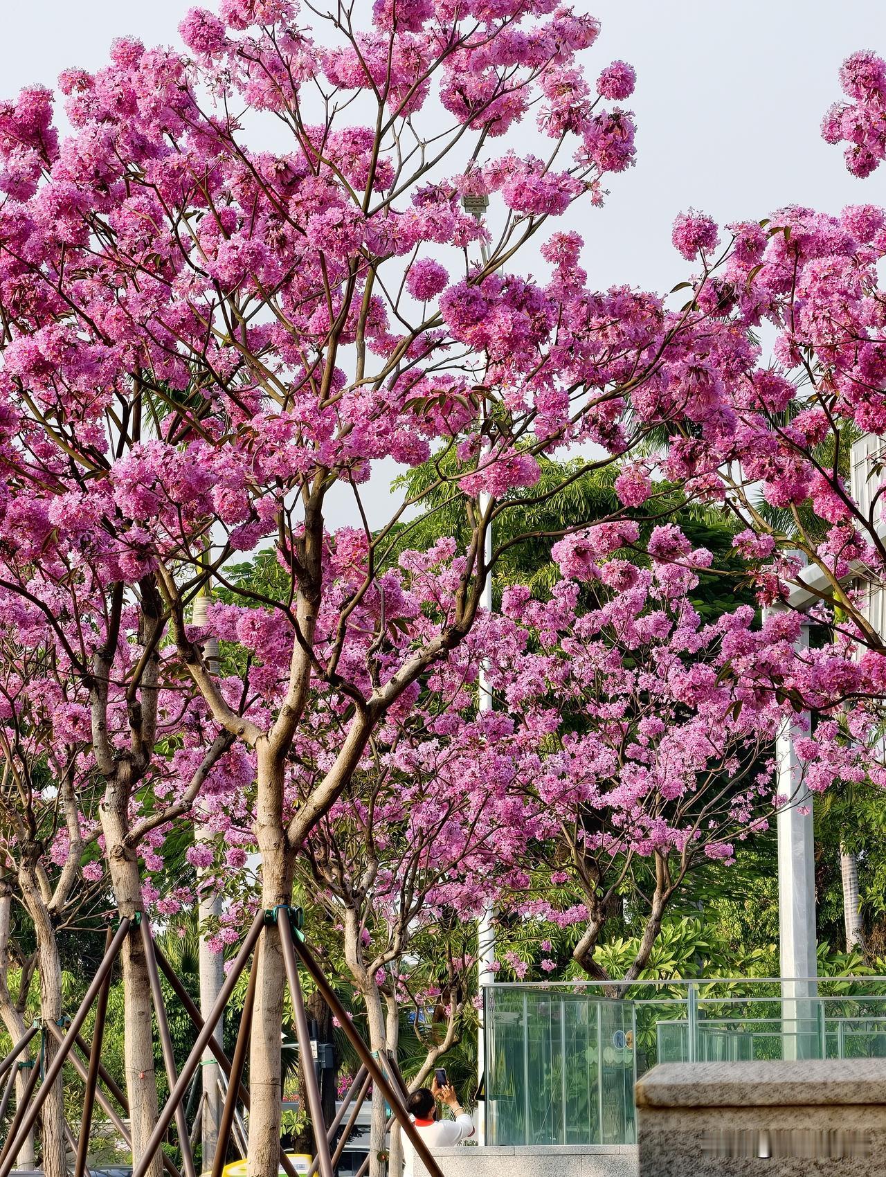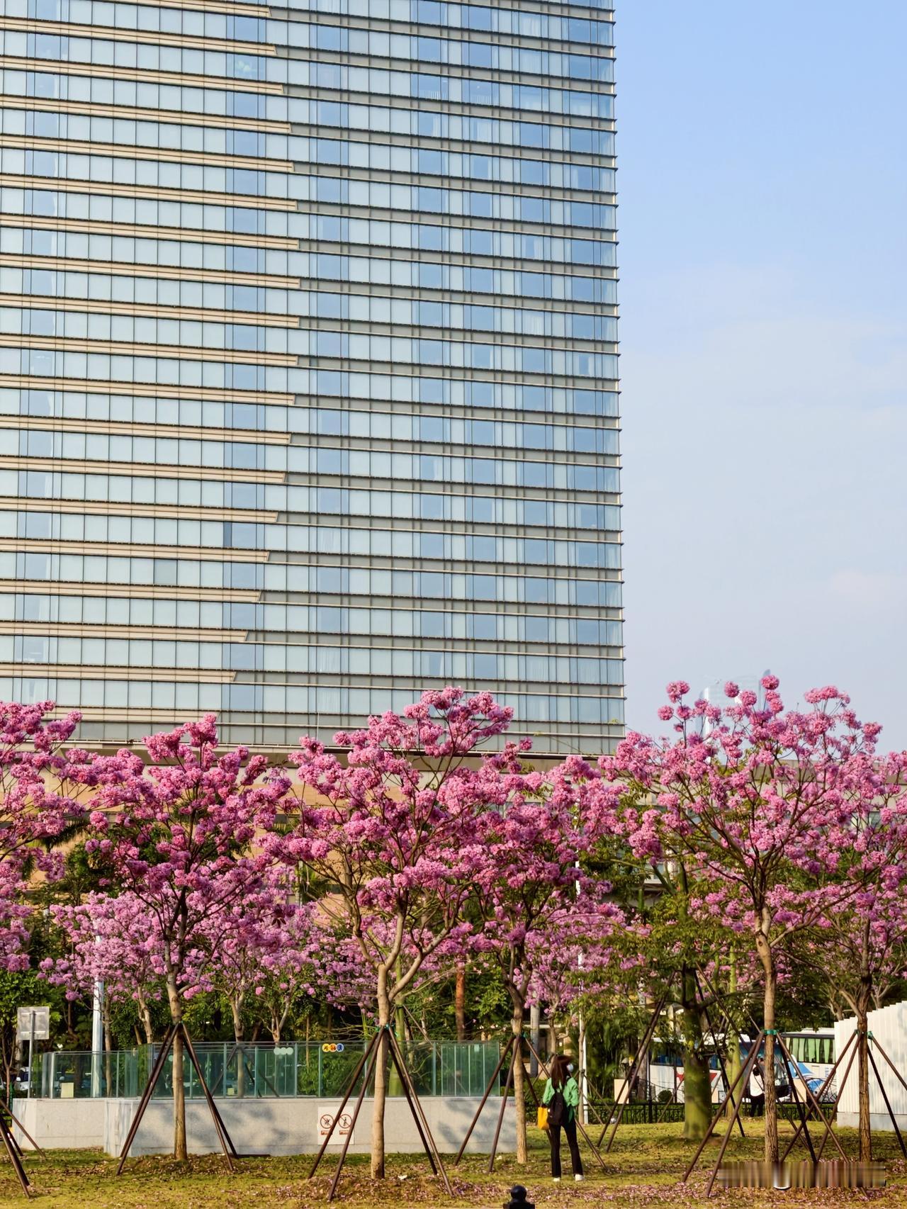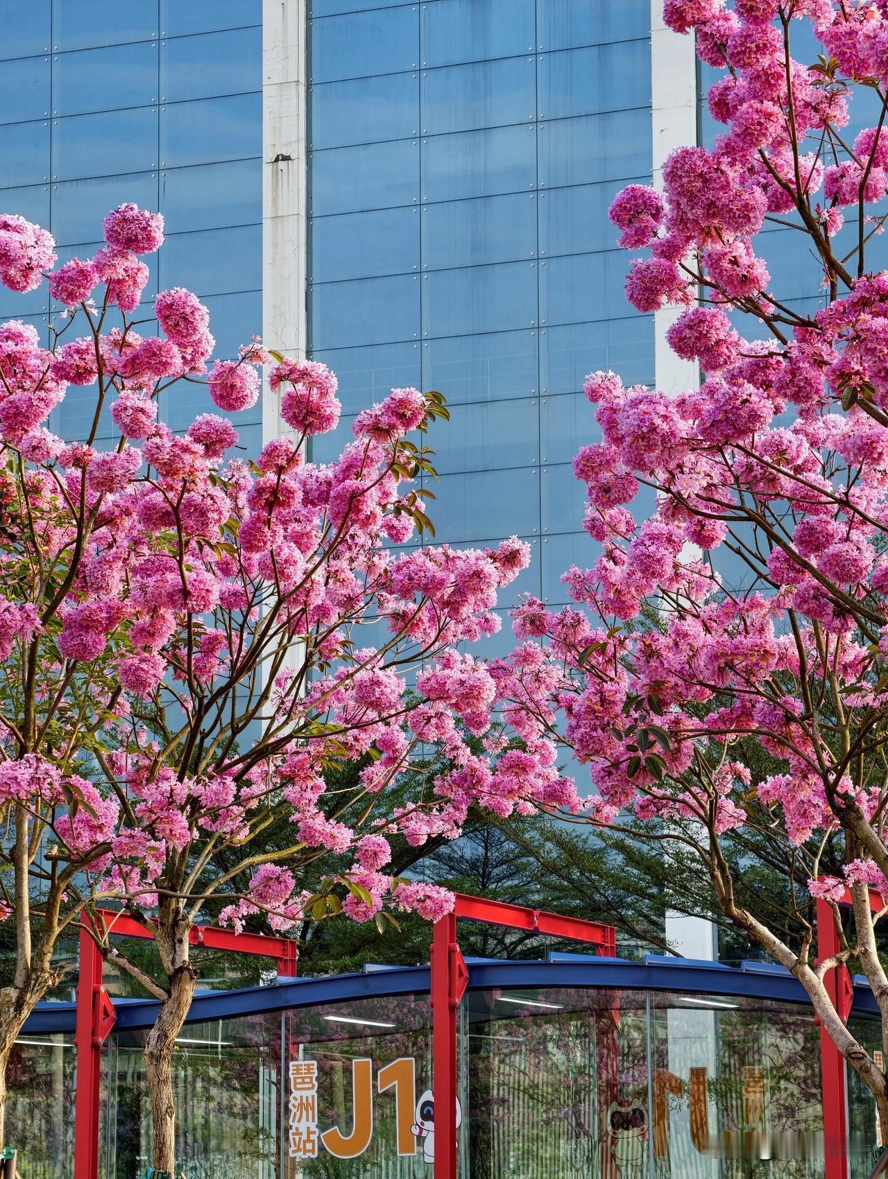 琶洲地铁站J出口,冒出一片紫花风铃木花海。 紫气东来,喜气洋洋。 是今年轻轨站开