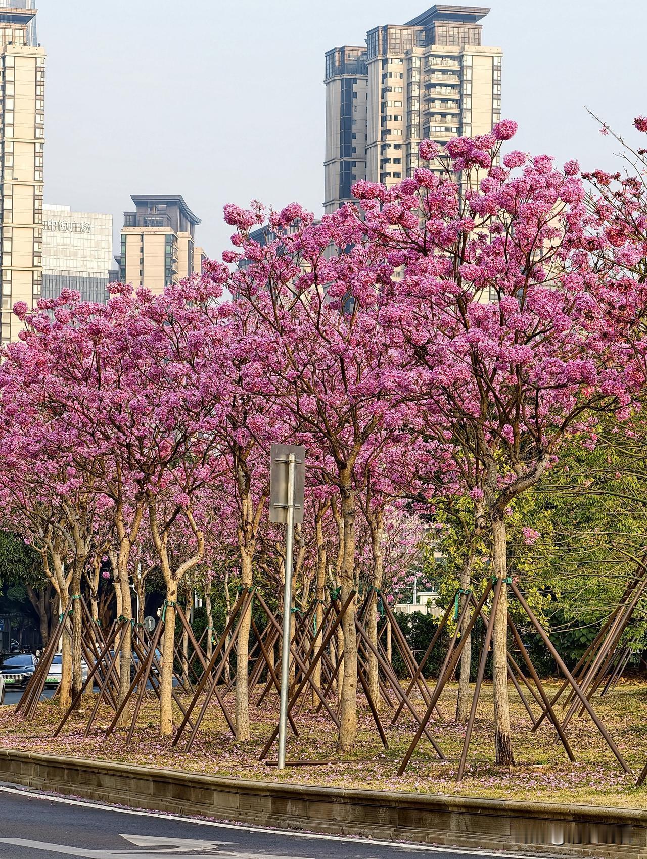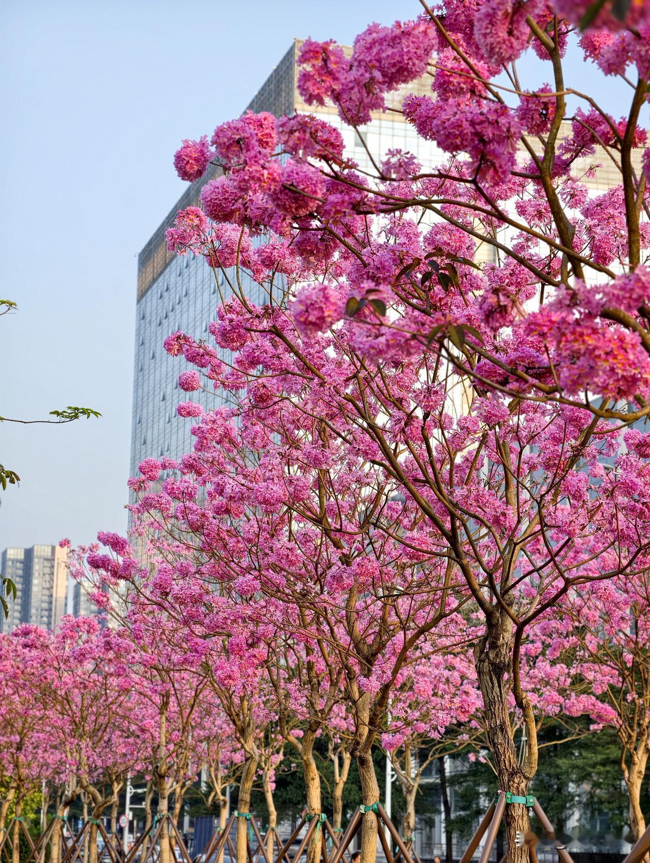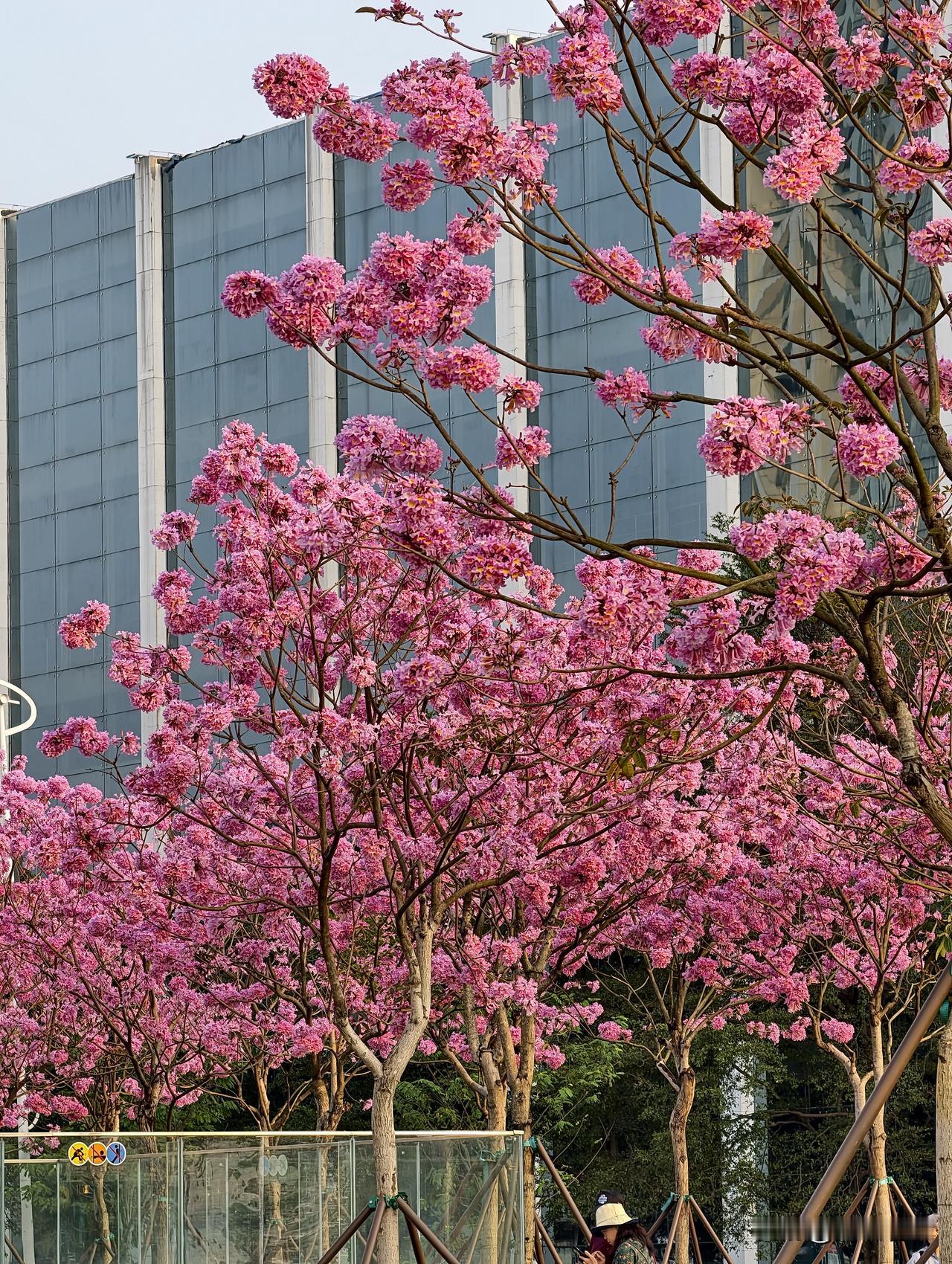 琶洲地铁站J出口,冒出一片紫花风铃木花海。 紫气东来,喜气洋洋。 是今年轻轨站开