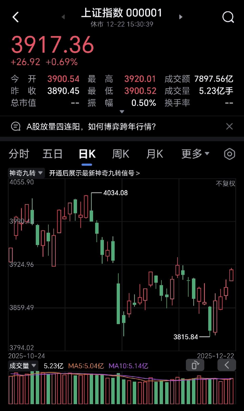 2025年全年交易日只剩最后6天,管好自己的手,接下来的几天里,交易量会极度萎缩,千万不要再满仓了。