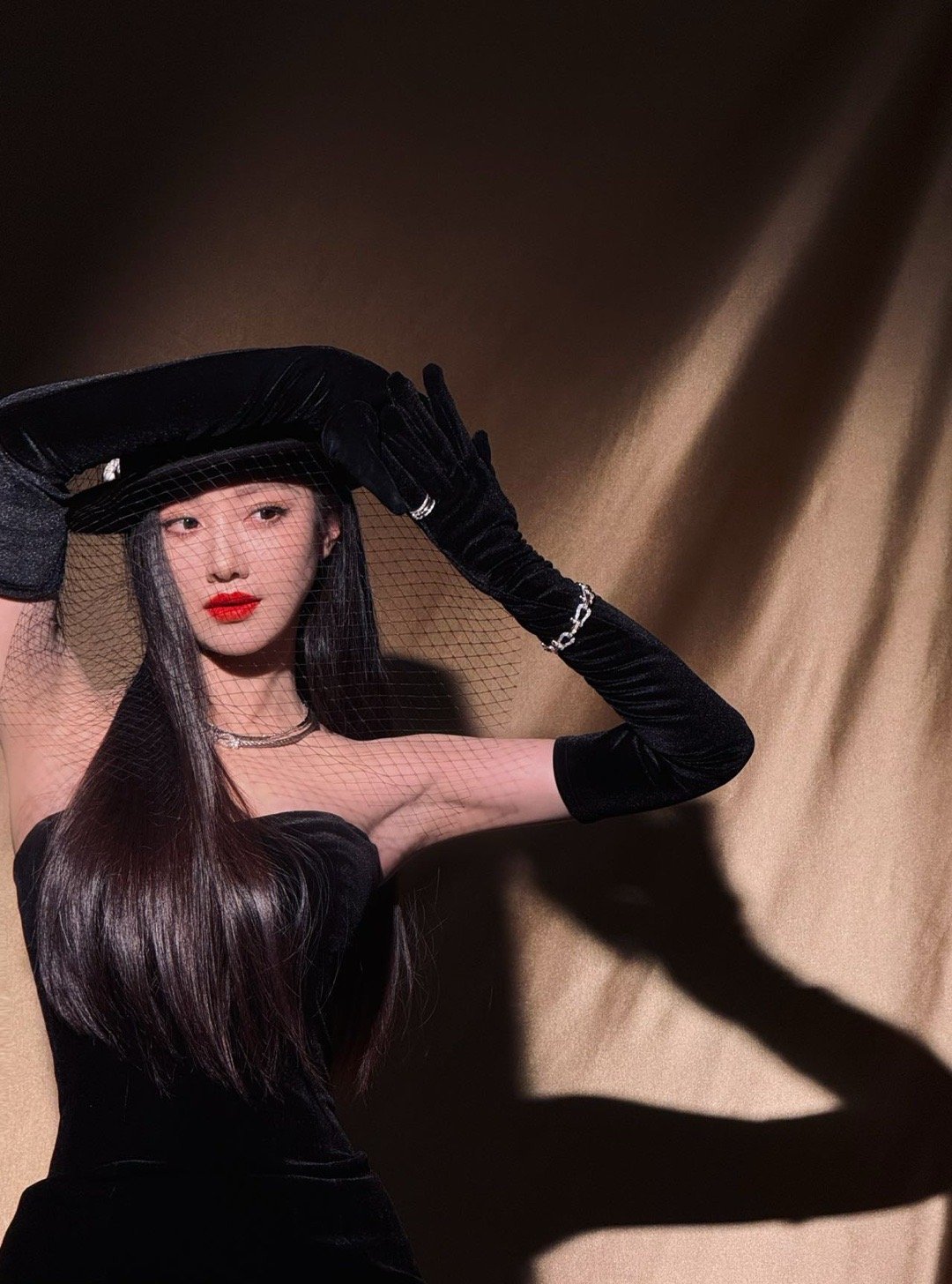 王鹤润英气女伯爵时尚芭莎珠宝年度盛典 王鹤润总能带来惊喜!这次造型完美融合了复古、神秘与力量感。黑丝绒手套的细节、面纱下的眼神,以及挺拔的姿态,共同讲述了一个关于“暗夜女伯爵”的故事,叙事感十足。