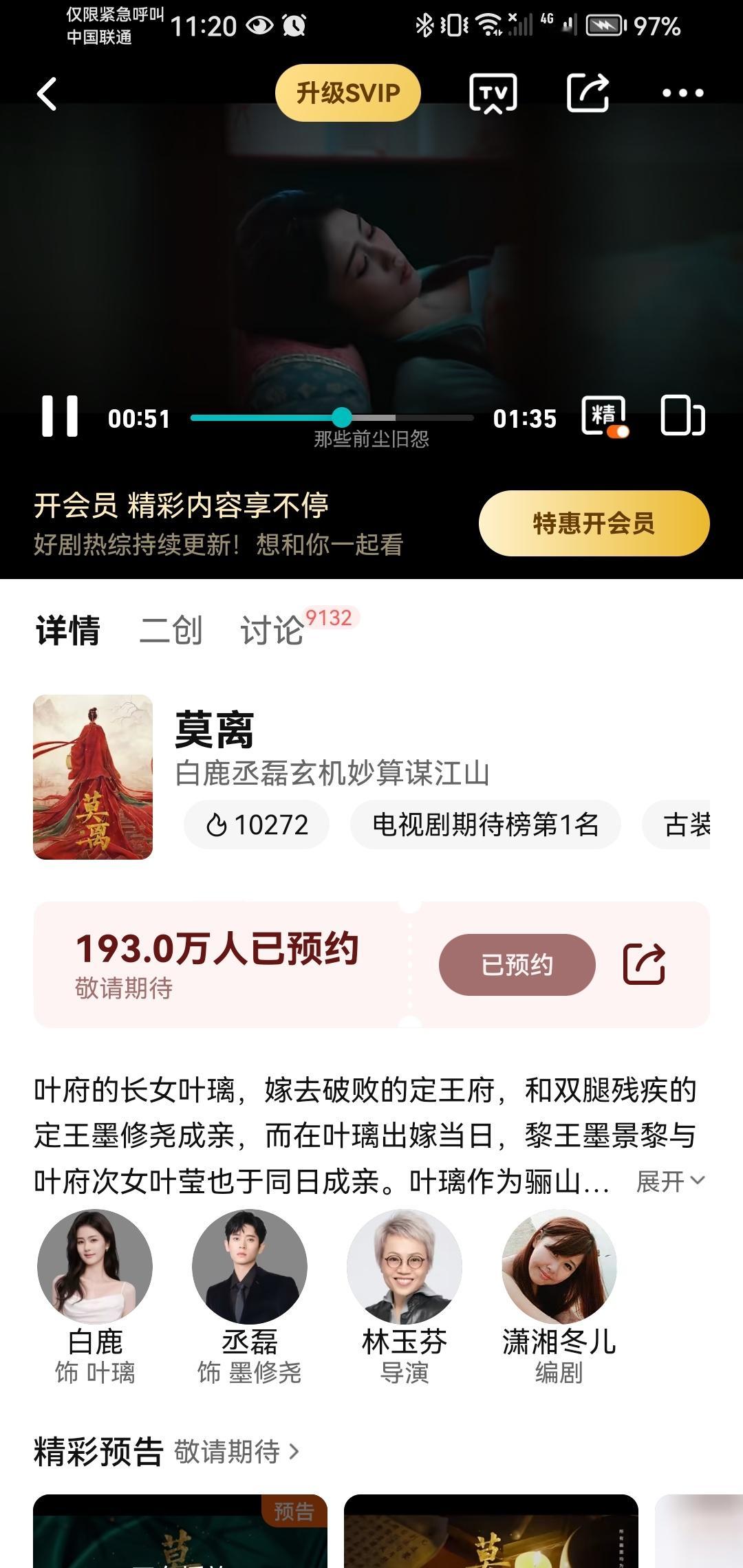 到底是谁啊,大半夜还抱着白鹿主演的莫离预告看。白鹿就是参加了个星光大赏,就让🐧站内观众发现了白鹿待播剧吗?一晚上还在破万。