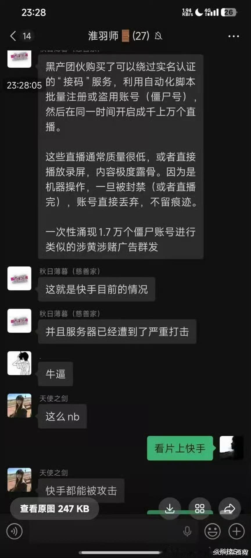 明年起发淫秽信息违法快手今晚什么情况?直播全在传播淫秽内容,现在直播这栏已经看不到了,估计服务器被攻击了