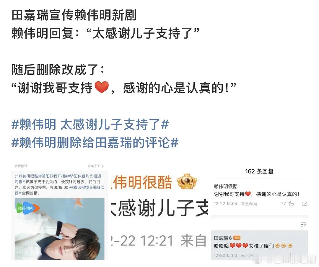 田嘉瑞给赖伟明新剧《骄阳似我》云包场被叫“好大儿”,立刻联动yxh,现在被田嘉瑞
