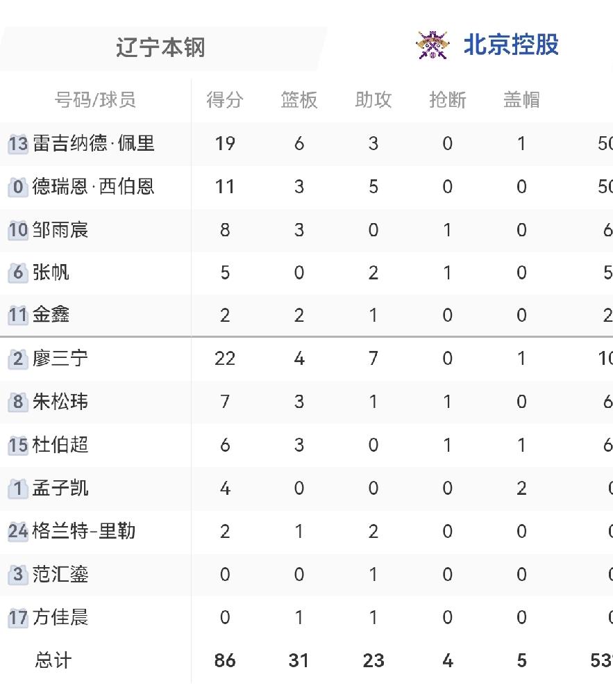 12月22日晚CBA这场北控对辽宁的比赛,结果太让人唏嘘。北控86:98惨败,惨遭3连败。想当初,球队开局可是两连胜的好势头啊。但核心中锋沈梓捷受伤,直接打乱节奏。他脚踝韧带撕裂,预计缺席6 - 8周。本场顶替他首发的邹雨宸拼尽全力,才8分3篮板,而健康的沈梓捷赛季揭幕战能轻松两双。沈梓捷一伤,北控内线防守、篮板保护和进攻战术全乱套。 另外,北控两名外援合计30分,状态却不稳定,缺乏强点。不过廖三宁替补登场超神,26分钟9投全中,三分3中3,空砍22分4板7助1盖帽,太可惜了,一个人真带不动全队啊。 另外,北控队的主教练三疯似乎对比赛掌控度不够好,教练和队员还需要磨合。 北京北控