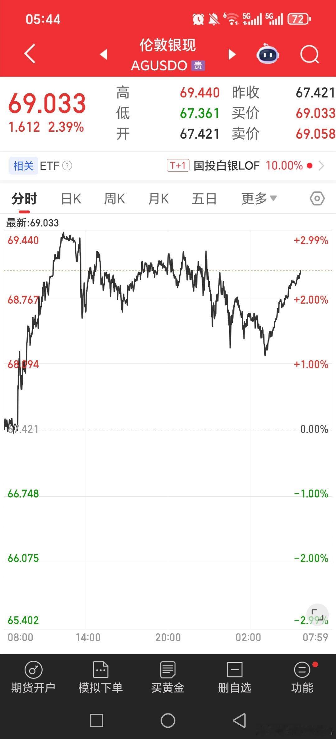 国投白银lof,上周五负八抄底,周一两天17点卖了,又买回!!!周二接着涨停,今