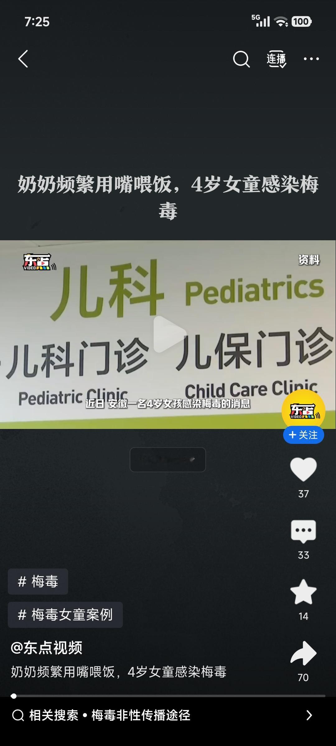 最近看到安徽一个4岁女童因为奶奶用嘴喂饭感染梅毒的新闻,真是让人惊掉下巴。一开始孩子身上起红疹子,家长以为是过敏,用药也不管用,后来才确诊是梅毒。 追根溯源,原来是奶奶有梅毒还没好好治疗,还经常嘴对嘴喂饭。刚好奶奶牙龈出血,孩子嘴里又有破口,病毒就通过唾液传播了。虽说梅毒通过唾液传播概率极低,但这特殊情况一叠加,悲剧就发生了。 除了性传播,梅毒还有母婴、血液、间接接触等传播途径。这也给大家提了个醒,老一辈的喂养习惯得改改,健康问题可不能马虎。