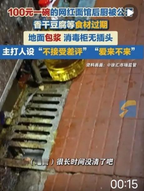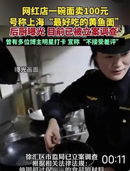 一碗卖100元,上海“最好吃的黄鱼面”被立案调查!多位明星博主曾打卡,后厨画面曝光,头皮发麻 谁能想到,花100元吃碗黄鱼面,吃进嘴里的可能是过期食材、吸满油污的“陈年”锅具煮出来的“科技与狠活”?上海这家火遍全网的“明呈黄鱼面馆”,靠着明星博主打卡背书,把一碗面炒到天价,可曝光的后厨画面,却让无数食客头皮发麻、胃里翻江倒海。 执法视频里的场景堪称触目惊心:地面油腻得能“包浆”,走路都得小心翼翼防打滑;灶台上的调料罐黑得发亮,仿佛从来没清洗过;锅具更是脏到结块,店员居然说“我来的时候就这样,洗不出来也不影响” 。更离谱的是消毒柜,执法人员按开机键毫无反应,店长挪来挪去半天找不到插头,明摆着就是个摆设。冰柜里更是“惊喜”不断:变质发黑的番茄、过期10天的拉面、包装破损的香干豆腐,这些过期食材转头就被做成浇头,端上消费者的餐桌 。 最让人愤怒的是店家的态度:墙上贴着“不接受差评”“爱来不来”的嚣张提示,面对检查还百般狡辩——过期食材说是员工私人物品,锅具脏是前任遗留问题,卫生不达标甩锅“冰箱故障” 。可就是这样一家食品安全公示牌亮着红色“哭脸”的店,却凭着网红营销,让无数本地食客和外地游客慕名排队,甚至有明星博主专门打卡推荐,把“智商税”包装成“高端体验”。 55元起步、100元封顶的价格,买的不是舟山小黄鱼的鲜,而是店家对食品安全的漠视,对消费者的收割。网友的吐槽戳中人心:“花大价钱吃过期菜,不如路边摊干净”“老板的拽脾气,都是打卡的人惯出来的”“明星推荐的网红店,到底有多少是真靠谱?” 。 如今监管部门果断立案,5万起步的罚款既是惩罚也是警示:网红店的流量光环再亮,也不能凌驾于食品安全之上;价格定得再高,少了良心和底线,迟早会翻车。食品安全从来不是选择题,而是底线题。希望这场“黄鱼面闹剧”能叫醒更多人:别被网红营销冲昏头,吃饭先看卫生,贵的未必是好的,踏实做好品质才是餐饮的根本。 你有没有被网红店“坑”过的经历?100元吃碗面,你能接受的底线是什么?欢迎在评论区吐槽分享!上海老上海面馆 上海必吃蟹黄面
