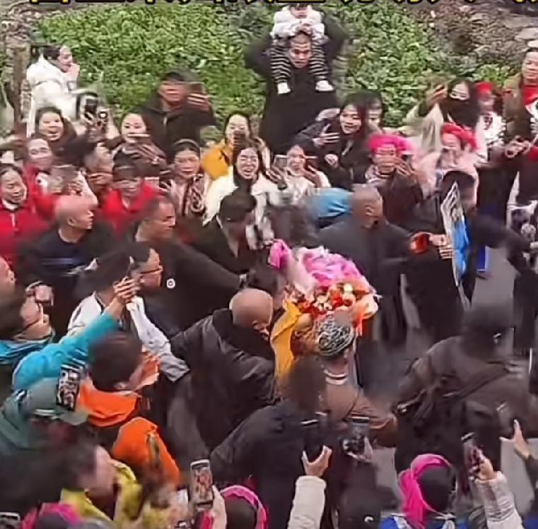 疯了疯了疯了,苗王参加完荒野求生回家的阵势远超刀疤哥,人潮拥挤锣鼓喧天就不说了,最让人惊讶的是这一幕。 人们夹道欢迎苗王回来,护卫队簇拥着苗王挤得甚至看不到那个小个子苗王,只看到橘黄色冲锋衣的残影被裹挟着移动。 有人说至于吗,不就挨了几天饿,又不是打了胜仗的将军。对于苗王的家乡人来说,将军不知道就知道苗王此刻比将军还厉害。 因为苗王参加比赛,自己的家乡被人所知名气大噪,未来的发展就不说了,ZF还专门找医院医治苗王女儿的眼睛,这还不厉害吗?