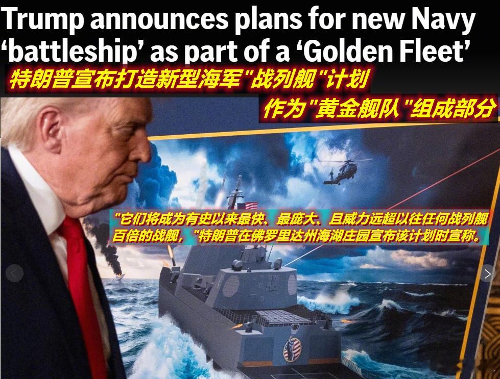 今天美联社的消息:特朗普介绍,该型首舰将被命名为"USS Defiant"号,其长度和体积将超过二战时期的"艾奥瓦"级战列舰,并将配备高超音速导弹、核巡航导弹、电磁轨道炮以及高能激光武器——所有这些技术目前都处于海军的不同研发阶段。众所周知,美国很多总统“青史留名”的方式,都是被后人以其名字命海军舰艇。而特朗普别出心裁的举动,是要玩超越吗?