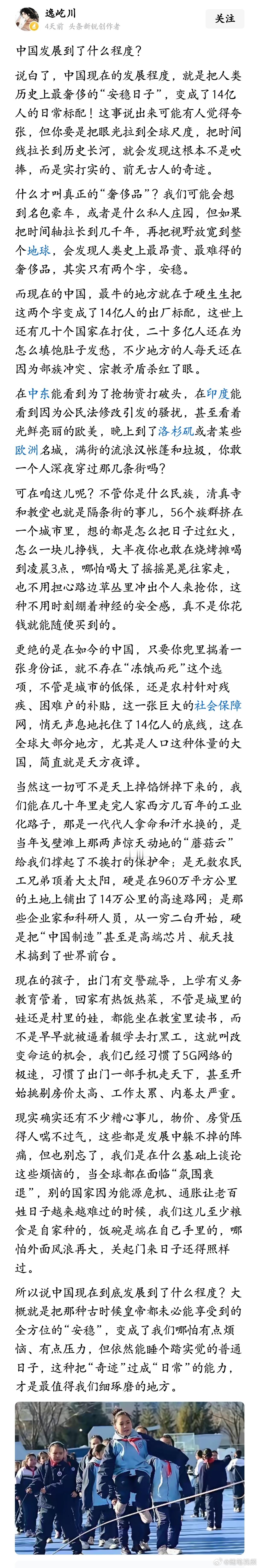 中国现在的发展程度,就是把人类历史上最奢侈的“安稳日子”,变成了14亿人的日常标配。