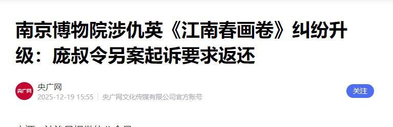 高层下场了。   庞家捐赠文物事件已然惊动高层,12月18日,国家文物局表示已接到举报,并已展开调查。江苏省文旅厅表示计划于2025年12日成立工作专班进行联合调查。   2025年末,南京博物院陷入一场严重的信誉危机。12月17日,新华社发布深度报道,原本想厘清馆藏文物流失的来龙去脉、平息外界争议。   没想到报道发出还不到一天,就彻底引爆了舆论。   收藏家庞莱臣的曾孙女庞叔令,没有选择常规的申诉渠道,直接面向媒体发声,正面驳斥了官方给出的叙述。   在庞氏后人看来,馆方没等到法庭对质,就先借助权威媒体给事件定调,这种操作严重削弱了公共文化机构该有的透明度,也让捐赠者后代难以信服。   而这场争议的核心,是一副如今估价近亿元的古画上。1959年,庞家后人庞增和把137件家藏精品交给了南京博物院,其中就包括明代名作《江南春》。   庞家后代一致认为,当年的交付,是基于对公共机构的信任而进行的捐赠,绝非简单的资产移交。   可南京博物院在后续对这批文物的管理中,却出现了明显的逻辑断层。馆方曾在1961年和1964年两次出具鉴定意见,都认定《江南春》是伪作。   到了1997年,这幅画被列入了文物调剂名单。2001年,馆方更是以6800元的价格,把它当作仿制品卖掉了。   谁也没想到,2025年,这件当年被以"仿制品"贱卖的画作,出现在了北京的拍卖会上。经过重新鉴定,它被确认为真迹,起拍估价高达8800万元。   从6800元到8800万元,巨大的价格落差,再加上画作"伪作"到"真迹"的身份反转,让公众不得不怀疑是否存在人为制造贬值以便流失资产的行为。   馆方当年的处置流程,暴露出的管理漏洞触目惊心。负责鉴定《江南春》的专家徐沄秋,身兼多重身份。   整个鉴定过程没有引入任何外部监督,完全是内部人员自我认定的"内循环"模式。更关键的是,包括《江南春》在内的许多文物,原始档案只有手写记录,连最基础的影像备份都没有。   这种操作,明显违反了文博行业的通用准则。放眼国际,主流博物馆处置馆藏藏品时,通常要经过数年的公示,再加上多轮技术交叉检测,确保流程公开透明。   而南京博物院仅凭内部几个人的主观评定,就敲定了一幅珍贵古画,这显然属于法治建设的空白。   目前,江苏省文旅厅已经成立调查组,案件也上升到了提级调查的层面,相关部门正在逐一核实这批文物的流转明细。   事实上,这早已不只是五件画作的权属纠纷,还涉及几十年前那场赠与契约能否得到公正履行。   如果捐赠者的赤诚情怀,最终被管理者以"鉴假"为借口变相清算,那么未来的收藏家,难免会对公共文化机构产生防范心理。   没人愿意看到,自己亲手交给国家的文化记忆,变成某些人暗箱操作、变现牟利的筹码。   而庞叔令的坚持发声,不只是为自己家族维权,更是在为所有曾经的捐赠者寻找一个公道答案。   后续的调查报告,必须经得起法律的审视和历史的检验,只有这样,才能修补南京博物院已经受损的机构信用。 信息来源:《南京博物院涉仇英《江南春画卷》纠纷升级:庞叔令另案起诉要求返还》,央广网,2025年12月19日。