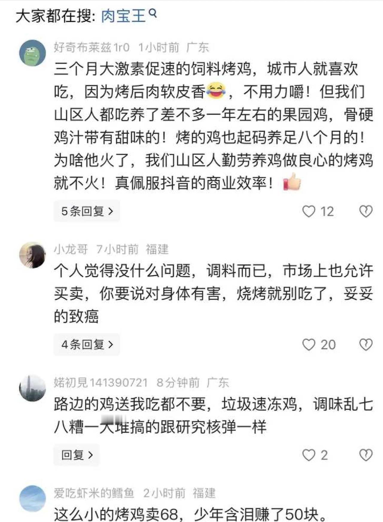 哎,前两天网上那个特火的16岁深圳烤鸡小哥,出来说话了。都说他“日入过万”,他赶紧摆手:哪有!一天到手就一千多。 原来“过万”说的是营业额。他店里请了十几个人,工资成本就不低,再扣掉材料、租金这些,每月落到自己手里大概三万块。是比一般人强,但也没传说中那么吓人。 但真正让我愣住的是,有人扒出他家的“秘方”了。烤鸡里加了“肉宝王”,一种肉味香精。难怪传出来的视频里那么香,老远都能闻到。 有干厨师的就说,这种复合添加剂成分复杂,长期吃可能刺激肠胃。甚至有人直接说:“我自己做菜要是放这个,一口都不吃。” 评论里也吵翻了。有人觉得,既然是合法卖的调料,用点也没啥,烧烤本身也不是健康食品。也有人感慨,自己老家养足月的土鸡,肉香骨头硬,反而红不起来,搞不懂为啥。更多人是在担心:现在吃东西就图个安心,靠香精撑起来的香味,心里总不踏实。 说真的,现在大家都追求天然点、添加少点的东西。网红餐饮翻车太多了,很多就倒在了材料和品控上。靠“科技”撑起来的味道,火得快,凉得更快。 要我说,这烤鸡少年已经有这么大流量了,其实是手里攥着一副好牌。如果能把“香精加持”慢慢换成真东西,比如用新鲜鸡肉、天然香料来腌,拿果木慢慢烤……说不定更能留住人。餐饮这行,到最后大家记着的,不是谁家最“香”,而是谁家最“真”。守住品质,才是能让生意一直做下去的密码。 当然也有人说实话:外边不少卤味、烤肉都用类似的东西增香。要是真在意,可能还是自己在家做最放心。 总之吧,吃的世界里,真诚比香味走得更远。让人安心的味道,才是真的值得排队的好味道。