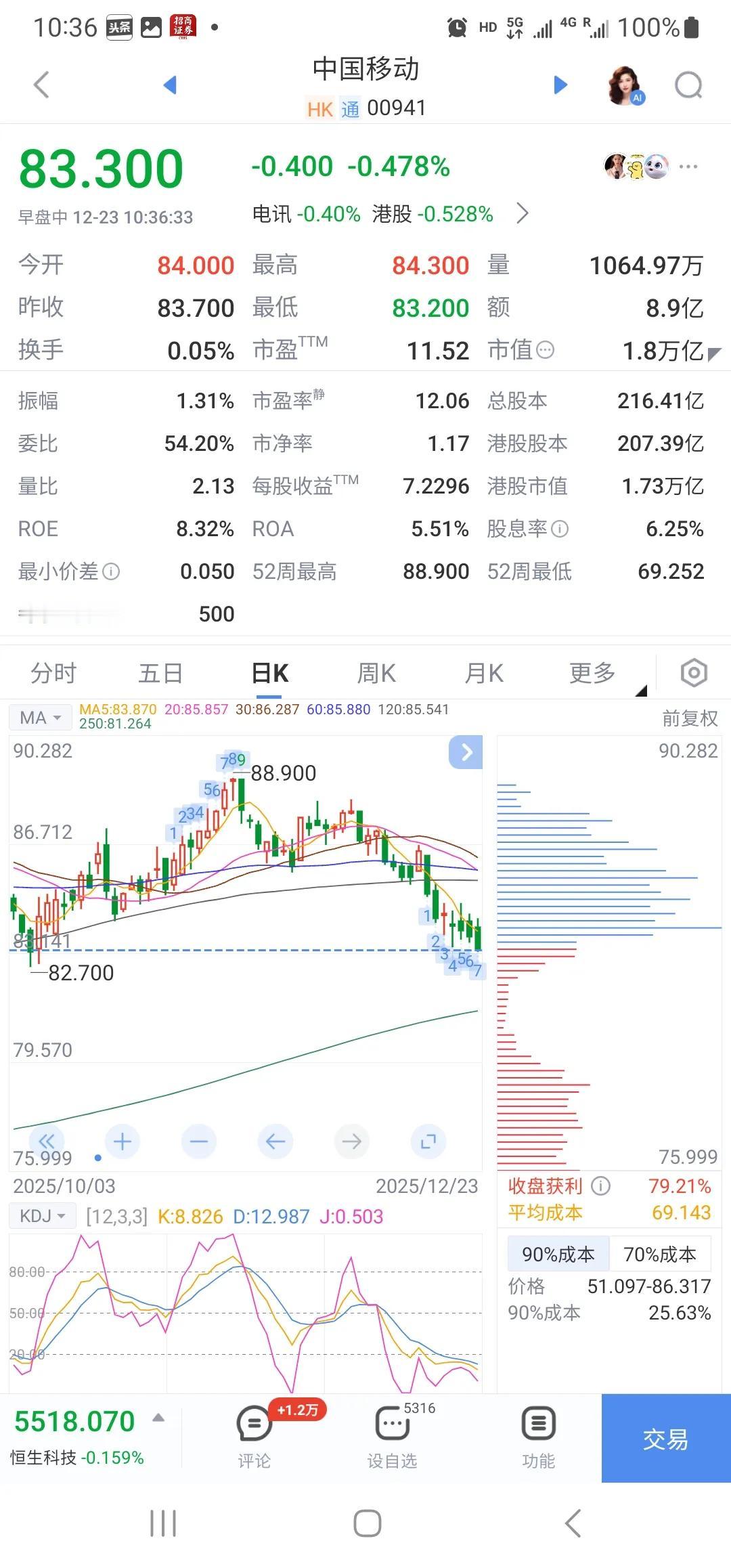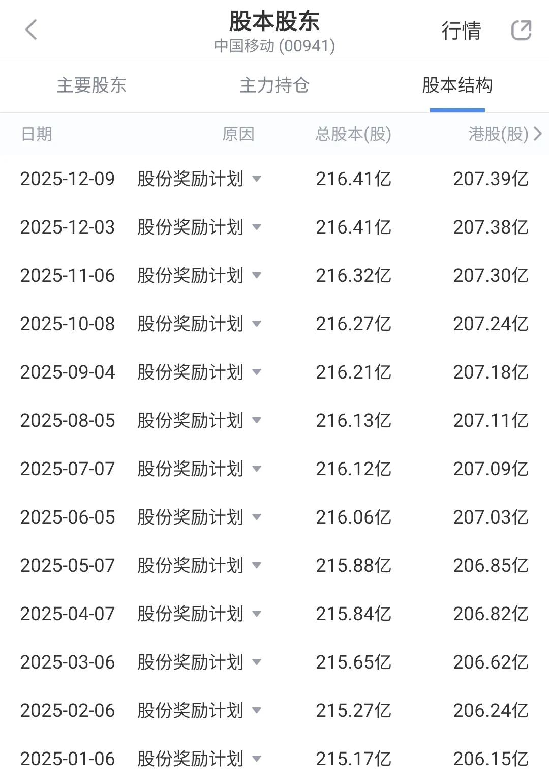 高息股中国移动,为什么其A股和港股会跟垃圾股一样爆跌呢(图1、图2)?原因有三个: 1)业绩陷入低增长,最新财报显示(图4),其营业收入同比增长0.4%,归母净利润同比增长4.03%。并且,这已经并非只是今年,而是数年持续性的低增长,显示电信市场已经深度饱和。 2)业绩呈现低个位数增长的同时,内部员工奖励股份却呈现出快速增加(图3),股本被严重快速稀释。3)员工奖励股的成本低于55港元,大大低于市场价格。大量的低成本内部股直接流入市场,对股价形成致命冲击。