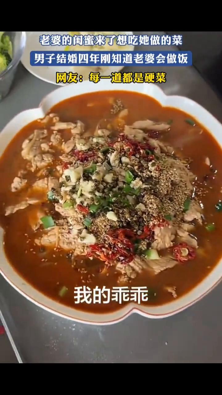 老婆的闺蜜来了想吃她做的菜,男子结婚四年刚知道老婆会做饭。网友:每一道都是硬菜。 发布日期12月21日山东。 这什么菜弄的?水煮肉片。 这还有这样手艺,起来。