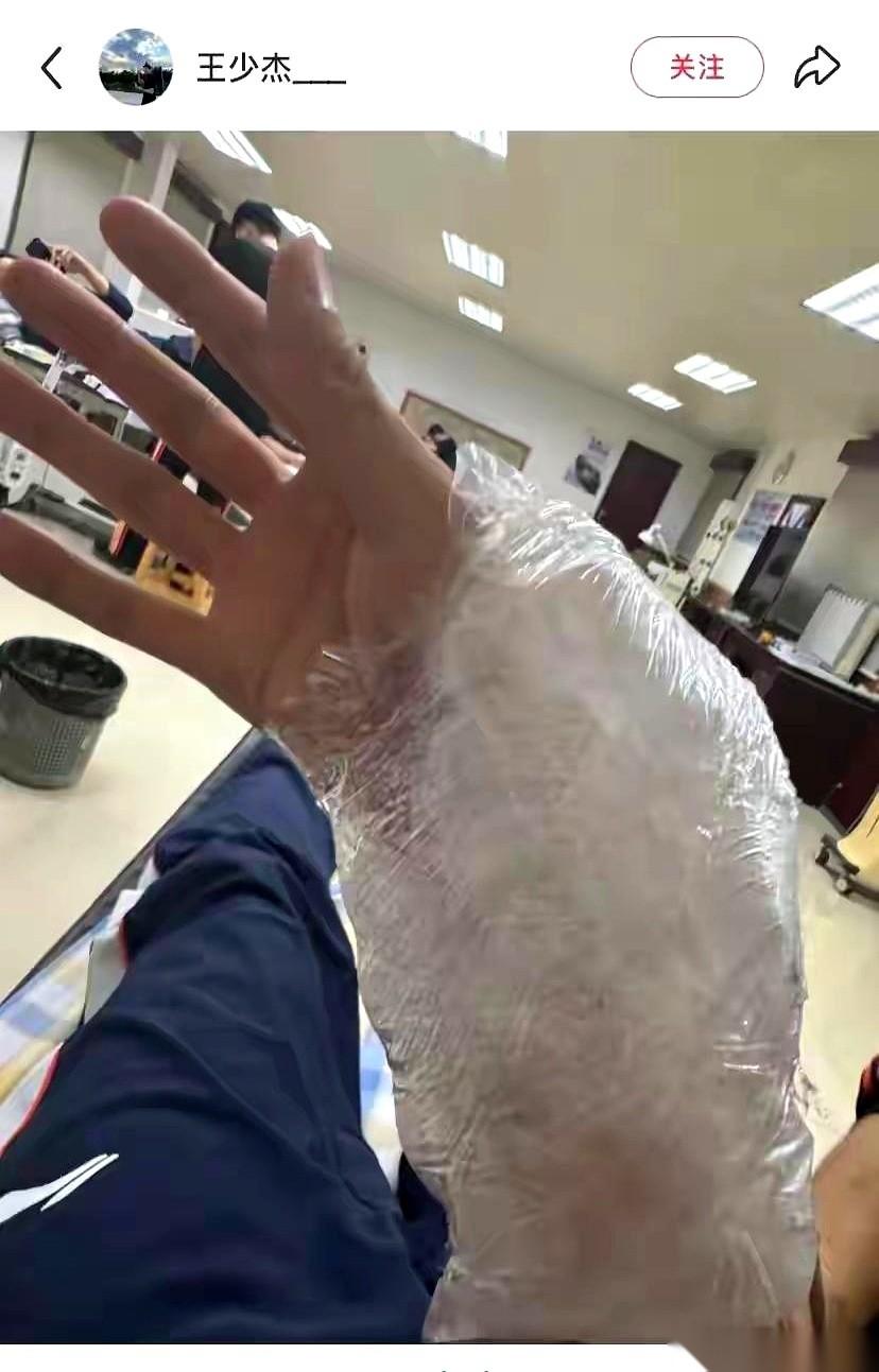 真的,有时候比赛看到最后,比分是多少都忘了。 就记得“咣当”一下,两个两米多的大高个,徐昕和王少杰,像两辆车一样撞一块儿了。 一个伤了膝盖,一个伤了手腕。 结果呢? 王少杰,手腕都那样了,硬是撑着打完了全场。赛后看他发的图,我的天,那手腕肿得……让人看着都疼。 这就是职业运动员。 我们坐在屏幕前,喝着可乐,点评着谁打得好谁打得臭,觉得97比94,赢了就是牛逼,输了就是菜。 可我们看不见的地方呢? 是肿得跟馒头一样的手腕,是不知道下一场还能不能上的膝盖,是每一次跳起、每一次摔倒背后咬碎的牙。 哪有什么天生硬汉,都是拿身体在换饭吃,拿前途在赌博的普通人。 赢球是本事,但能顶着伤痛站着拼到最后一秒,这叫风骨。 真的,都好好养伤吧。 健康比什么都重要。