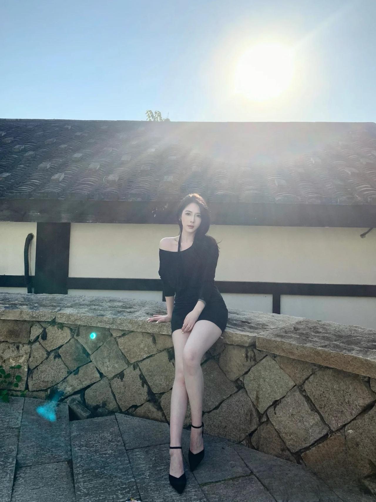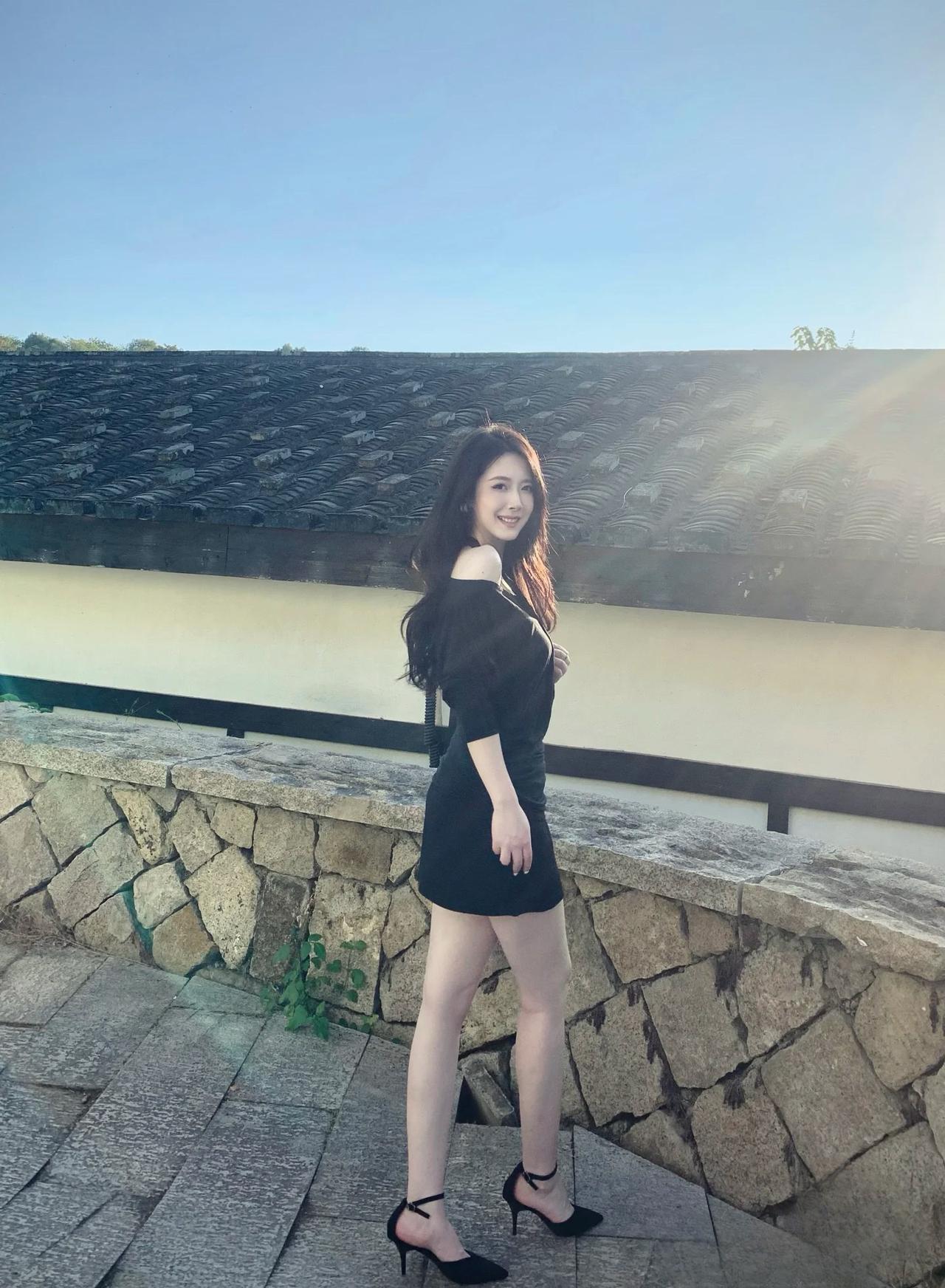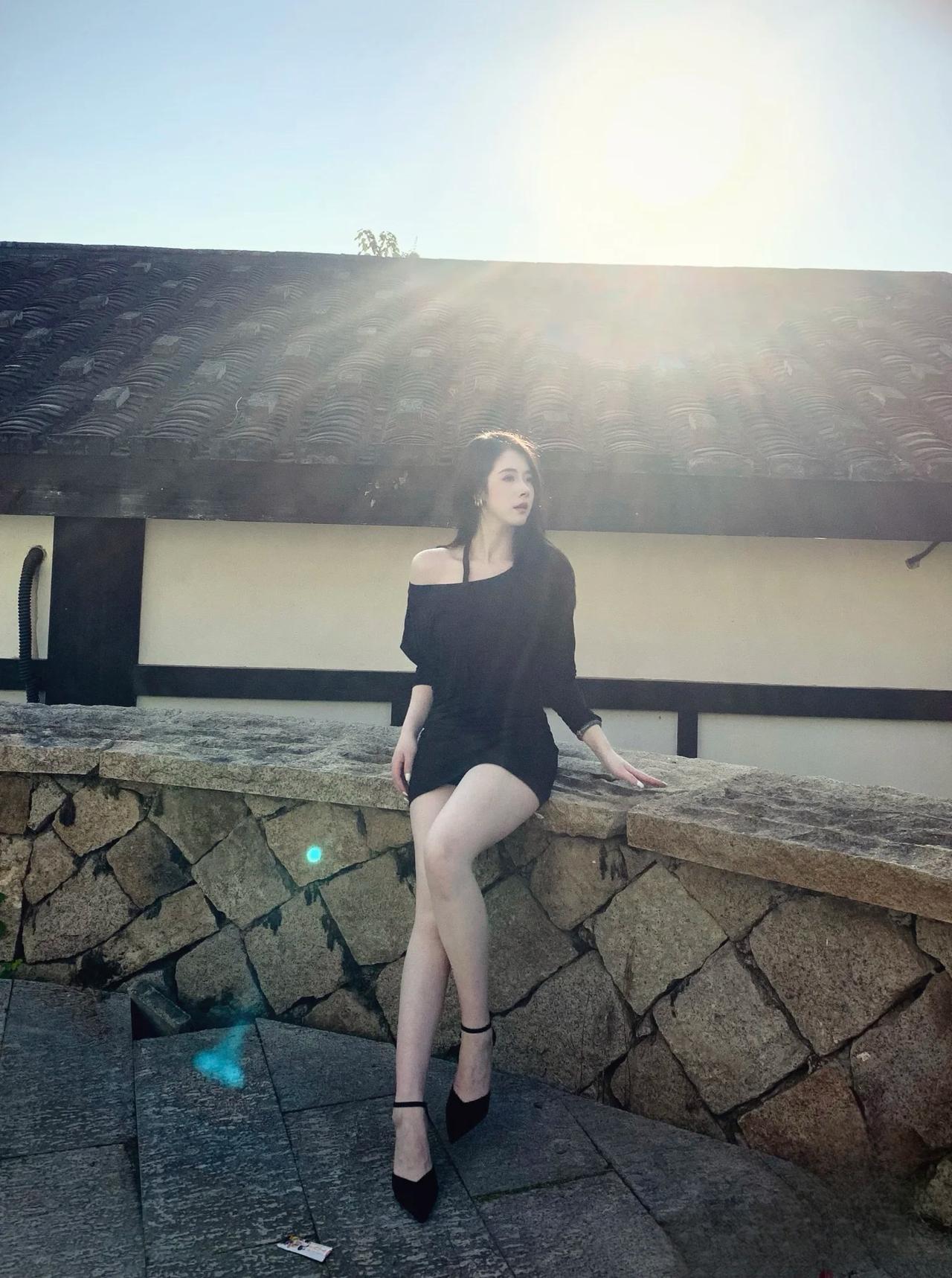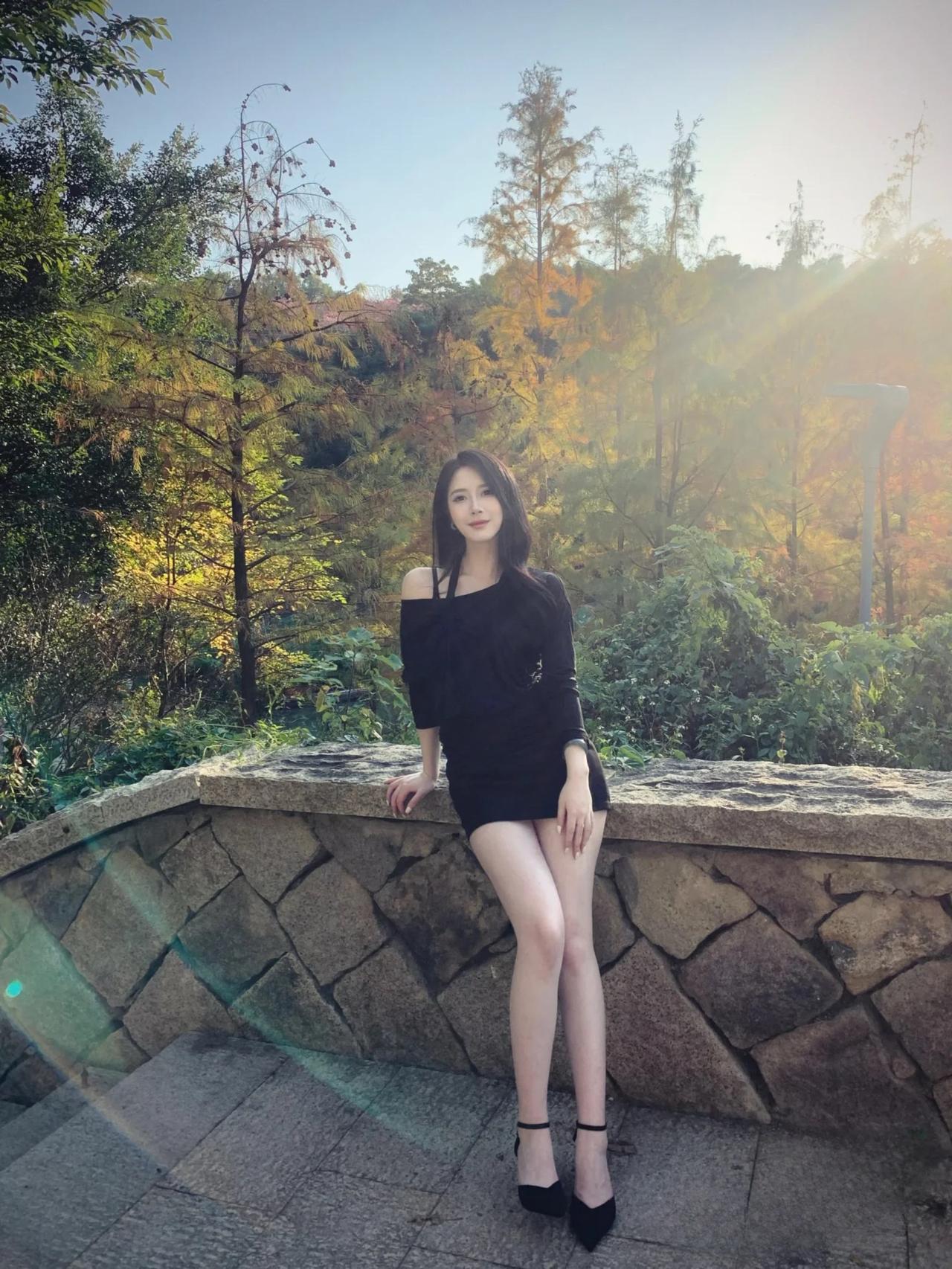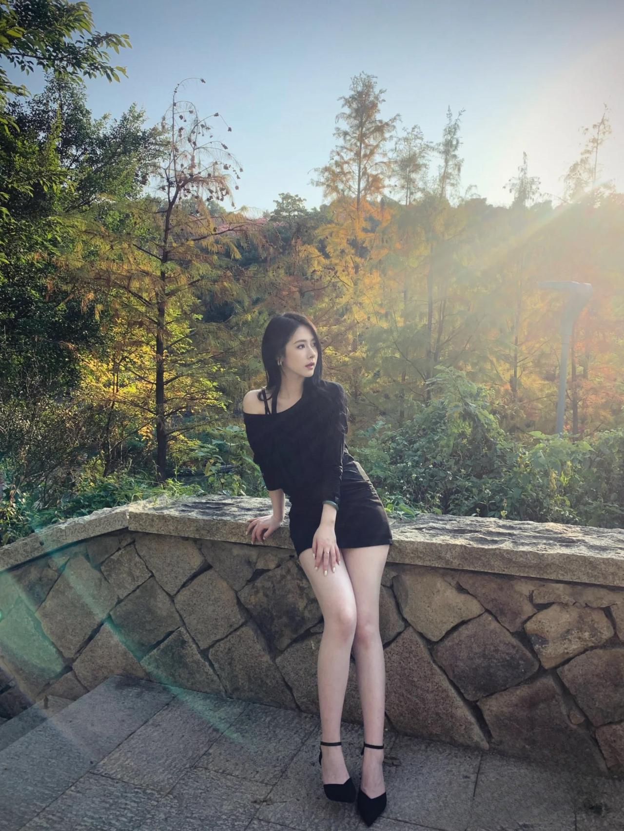 秋日暖阳下的优雅黑裙,与自然融为一体。