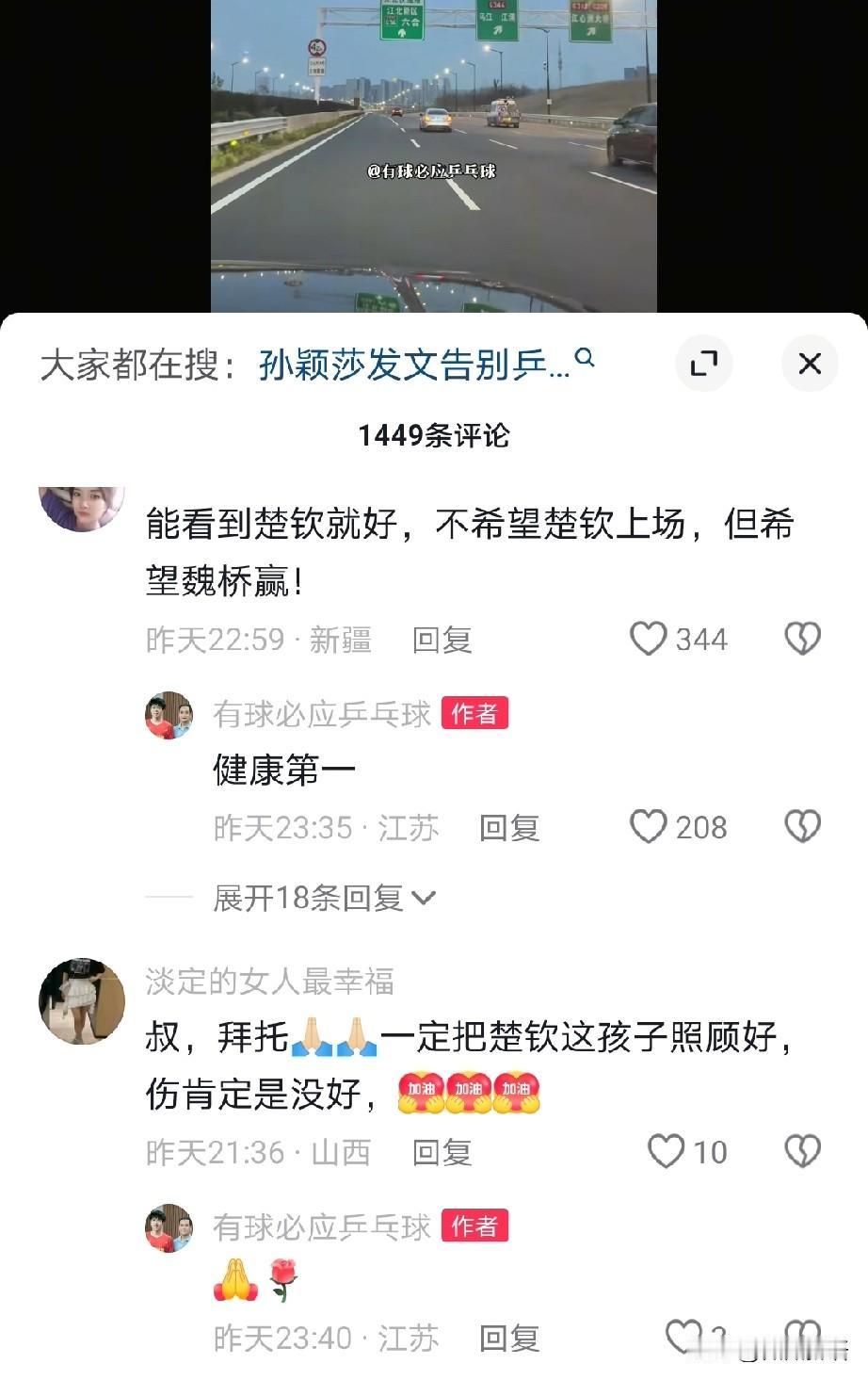 魏桥的这个叔已经到南京了。 每次乒超的比赛,有求必应乒乓球这个叔就会先到比赛地,看到他们说开车从山东到的南京。昨晚抵达南京后。叔还给大家看了一下他们住的地方,看起来环境不错,这个床很大啊,他还照着镜子跟大家打个招呼。 工作人员先到南京,魏桥的球员们都在北京训练,昨天看到王楚钦、梁靖崑他们在先农坛练球了。26号比赛就要开始,他们最晚明天也要出发了吧,不知道王楚钦会不会去参赛。 这个叔发了动态后,看到有网友说:“魏桥叔,如果楚钦一定要去,请一定要加倍细心照顾好他,他的伤还没恢复好。”看到魏桥叔说健康第一,王楚钦会不会去参赛,他没有说。每次打乒超,这个叔都会跟在楚钦的身边,也会帮楚钦拿小白箱,如果出去去参赛,他估计也要上场的吧。昨天看到楚钦给小朋友们签名,看着这孩子都瘦了很多,确实健康最重要,希望每一位参赛的运动员都能健康完赛!