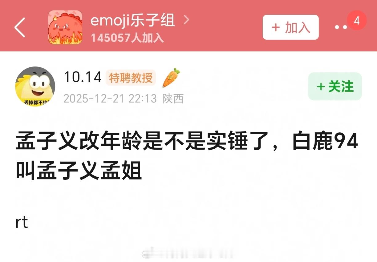 真离谱...桃花坞时那么多人叫孟姐..和年龄有什么关系?这是一种称呼好吧...宋丹丹叫过孟姐,张国立叫过孟姐,汪峰叫过孟姐想黑孟子义直接点,不用这么迂回...