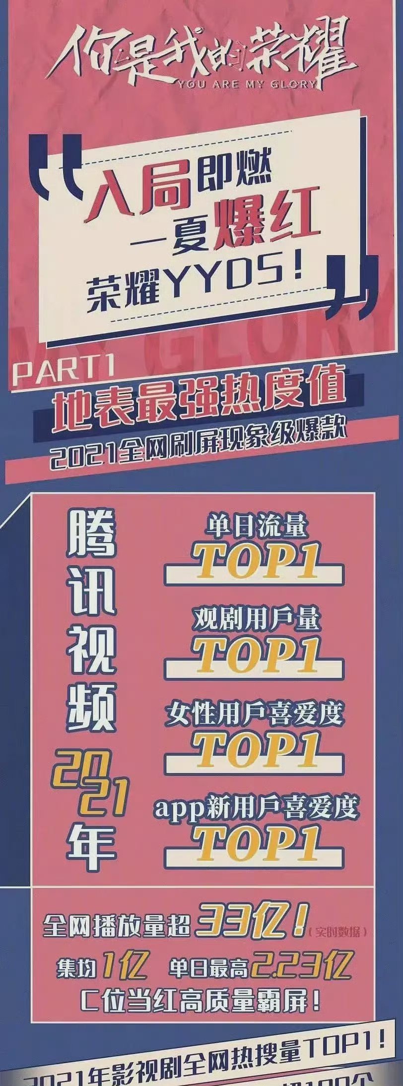 你是我的荣耀限时转免当年迪丽热巴主演的《你是我的荣耀》,累计播放量超过25亿,单集最高播放量达到2.1亿,这成绩太傲人了吧,海外关注度也非常高。另外,集均4000的吹破天,《你是我的荣耀》集均1亿,也没咋说,有的时候低调也不好!