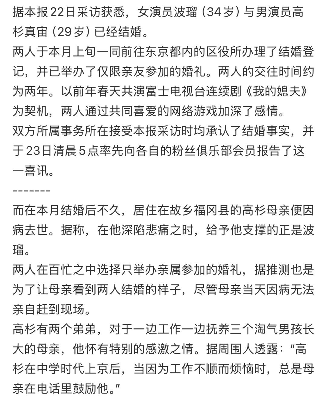 波瑠高杉真宙结婚好好好 真成了〈我的媳夫〉又是一对般配的日娱夫妻(最近日娱突然让我吃这么好😘
