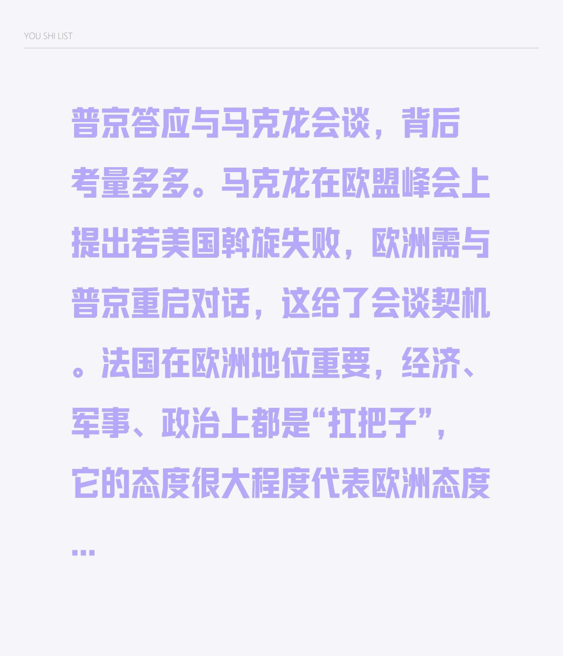 普京答应与马克龙会谈,背后考量多多。马克龙在欧盟峰会上提出若美国斡旋失败,欧洲需与普京重启对话,这给了会谈契机。法国在欧洲地位重要,经济、军事、政治上都是“扛把子”,它的态度很大程度代表欧洲态度。而且马克龙领导下的法国相对独立于美国,强调欧洲自主性。 普京或许想借此拉拢法国,欧盟内部有分歧,法国态度转变可能带动欧洲态度松动,让局势向俄罗斯有利方向发展。另外,欧洲多国筹划的部队和贷款项目若推进,对俄不利,加强与法国沟通能缓和关系,避免战争扩大。这次会谈,值得好好关注后续走向。