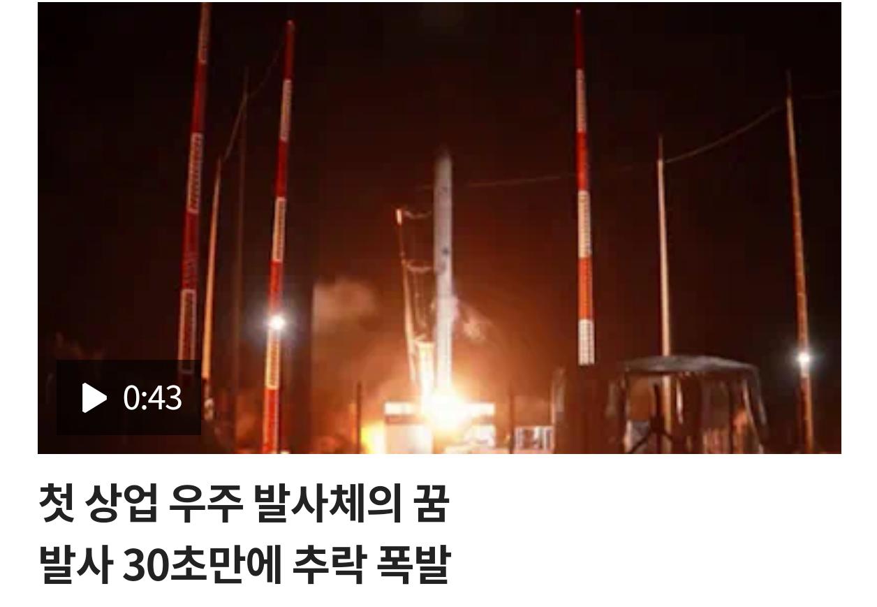 【韩国首颗商业运载火箭魂断巴西】在经过两次推迟发射后,原定18日发射的韩国首颗商业运载火箭“韩光-纳米”,于23日上午10时13分在巴西阿尔坎塔拉航天中心发射升空,但发射飞行约30秒后,该火箭即坠落爆炸。 “韩光-纳米”火箭18日因一级氧化剂供应系统冷却装置异常而推迟发射;20日再度因运载火箭地面供电系统问题及二级液体甲烷贮箱排气阀状态异常而推迟发射。此次发射失败,原本用于展示实力的现场直播被中断,innospace的股价更是随之暴跌22%。 作为承载韩国航天大国梦的希望所在,innospace自成立初期就受到了韩国政府的大力支持,给人、给钱、给政策。不过,此次发射失败被保守派网民骂的最狠的却不是他们,而是韩国总统。当然,只要韩国有点大小事,挨骂的都是他。