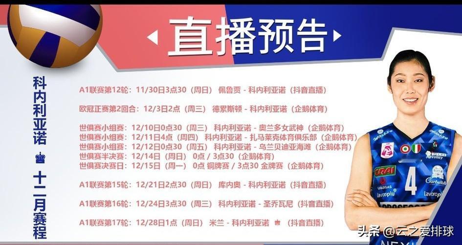 【朱婷VS庄宇珊德比大战】 明日凌晨03:30科内VS圣乔瓦尼 又要熬夜看比赛