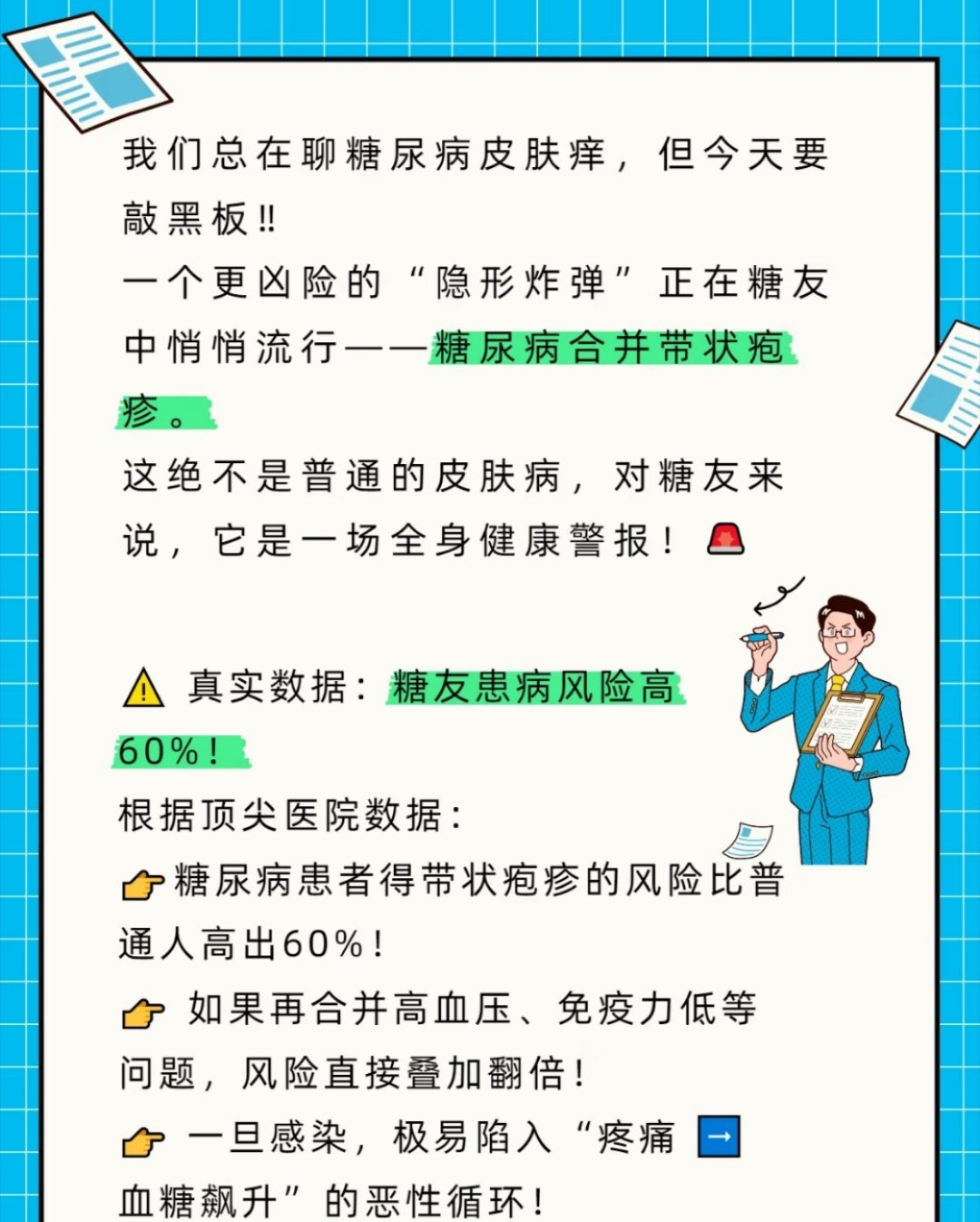 带状疱疹高发期,糖尿病患者要注意这些。看懂为什么容易中招,如何防护,如何处理缠腰龙容易缠上糖尿病专家谈糖尿病患者更易感染病原体