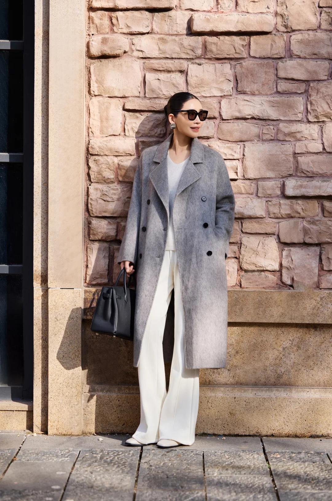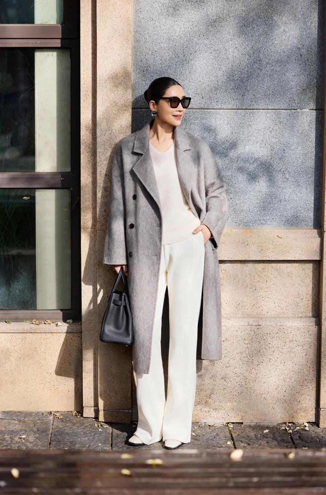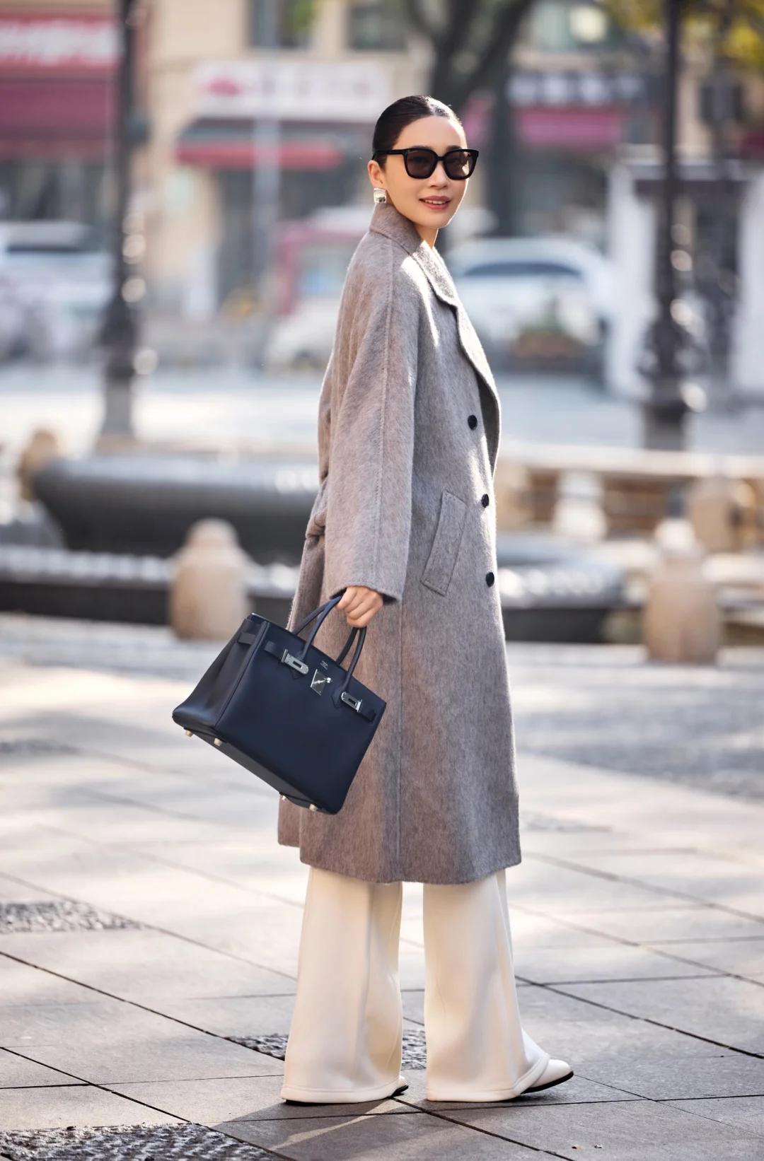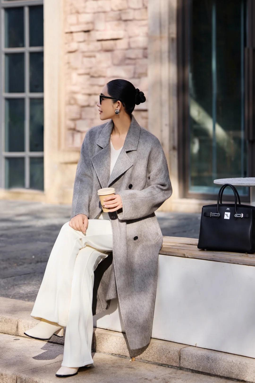 秋冬想要穿出优雅高级感,这组搭配绝对值得借鉴! 灰色长款大衣是秋冬衣橱的“气质担当”,沉稳大气又自带高级滤镜,轻松撑起强大气场。 内搭白色V领打底衫,纯净的白色与灰色碰撞,清新又提亮,V领设计巧妙修饰颈部线条,增添一丝精致女人味。 下半身搭配白色阔腿裤,垂坠感十足的裤型走路带风,与内搭上下呼应,整体造型简洁大气。 再配上一双简约的短靴或精致的手提包,轻松打造出毫不费力的优雅高级风,让你在秋冬街头脱颖而出。