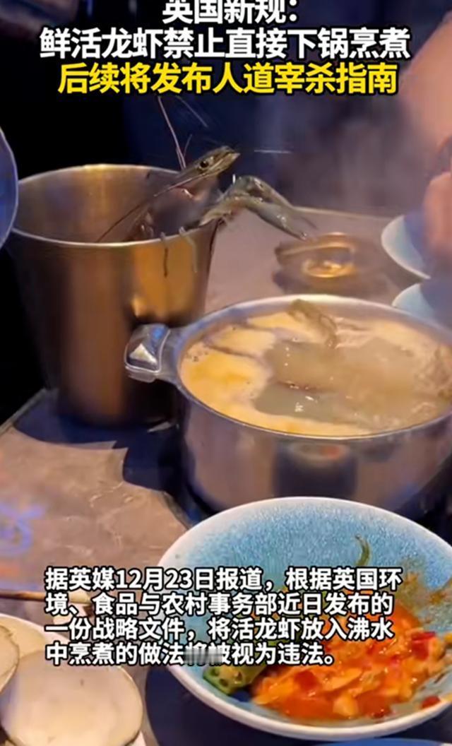 英国这波操作真是让人惊掉下巴!2025年12月23日消息,英国环境、食品与农村事务部发文件,把活龙虾丢沸水里煮算违法了。以后烹饪龙虾得先冷冻或者用电击装置弄晕。 这禁令涉及十足目甲壳类动物,像龙虾、刺龙虾、螃蟹都在其中。伦敦政治经济学院报告说它们是感知动物,活煮会让它们剧痛。 这到底是动物福利进步,还是美食传统终结?有人觉得是对动物的关怀,也有人吐槽这是多管闲事,破坏了烹饪的原汁原味。英国这是加入了瑞士、挪威和新西兰等禁活煮的国家行列,后续影响值得关注。