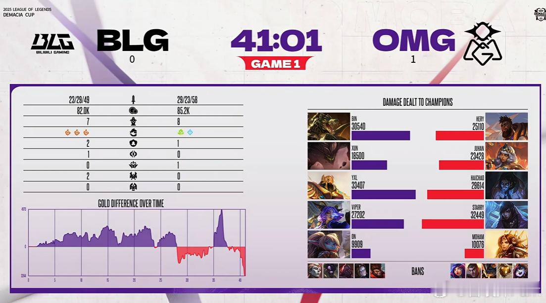 不给我Bin大哥面子,刚刚力挺完Xun,OMG第一局就爆冷后期赢下了比赛,不过没关系,德杯就是用来发现问题的,下盘BP好点应该有决胜局看这把为什么输,一是BP不行,二是Knight隐身了,我更好奇WBG和JDG到底什么实力,WBG赢了JDG,WBG被OMG零封了,JDG又零封了OMG,现在OMG第一把赢了BLG。。Bin力挺XunBin德杯首次出镜 2025LOL德玛西亚杯