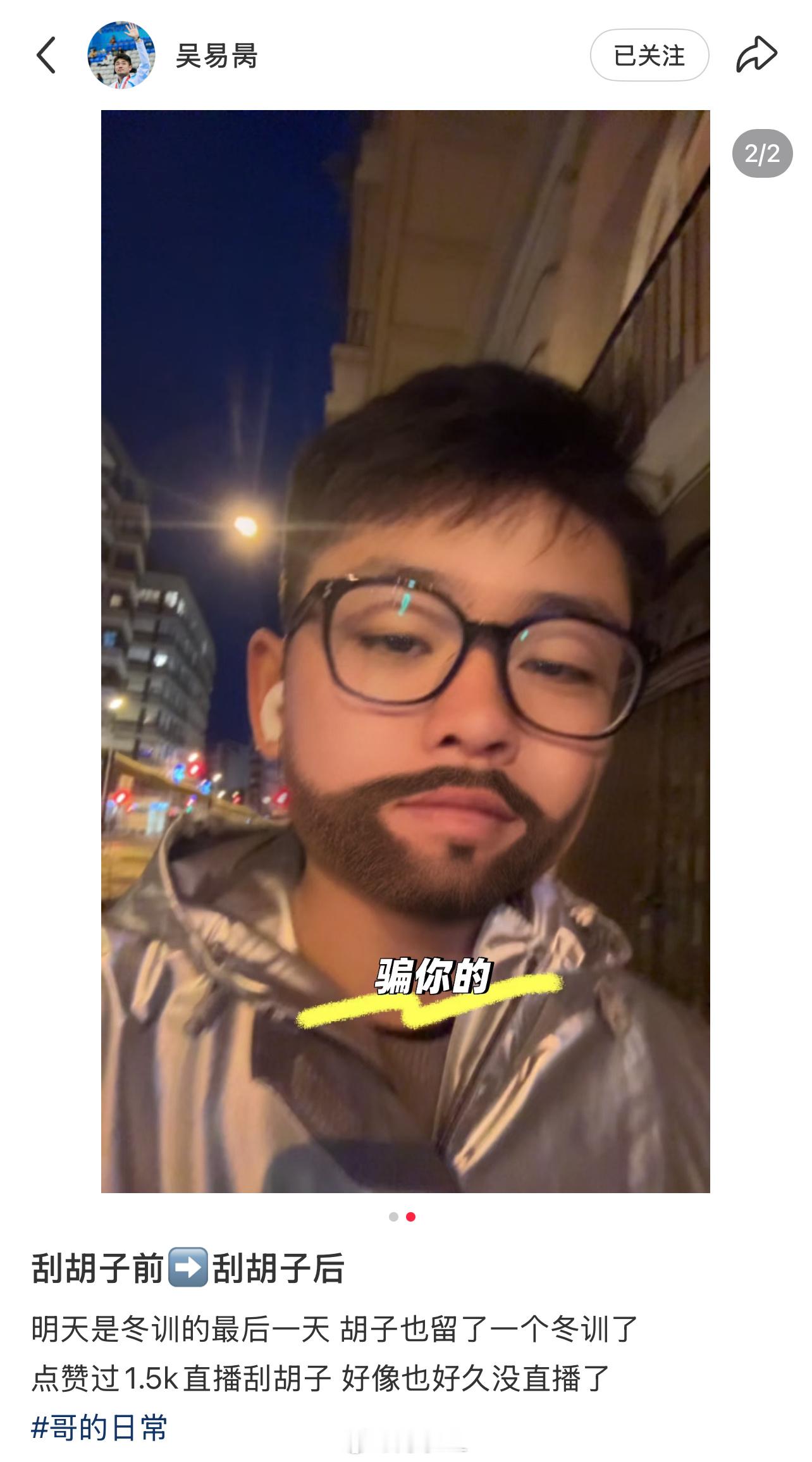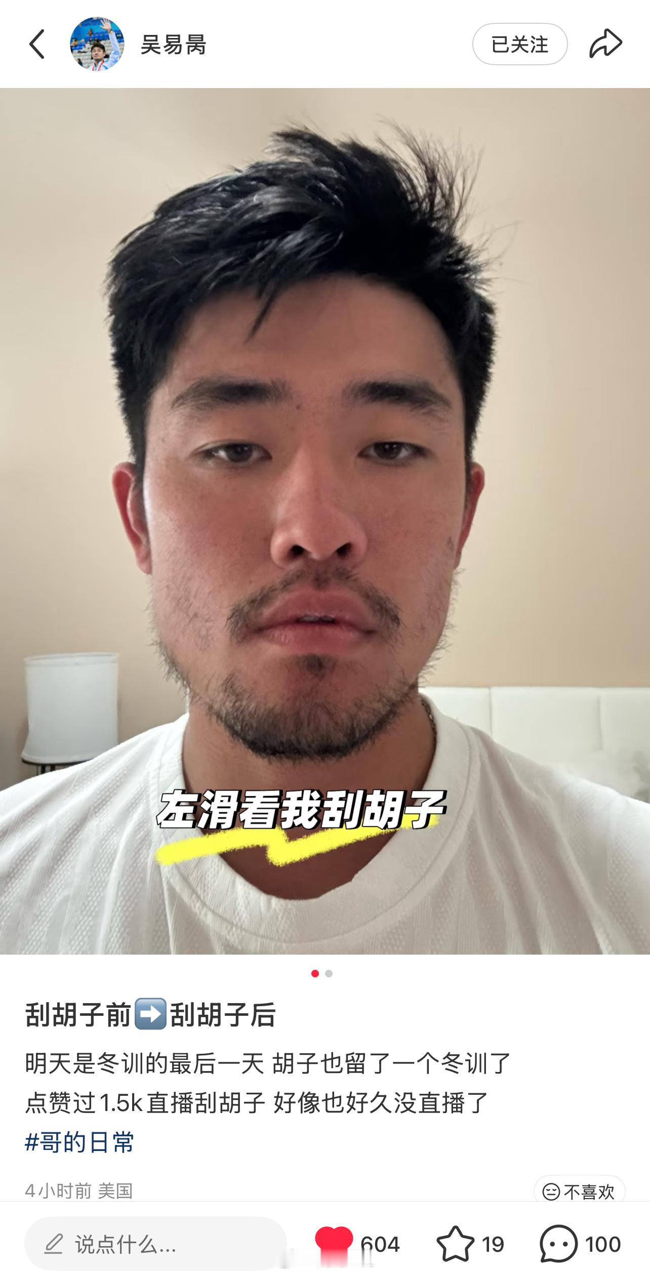 🍠点赞1500,看吴易昺直播刮胡子🪒年度体育榜样力量体育大赏