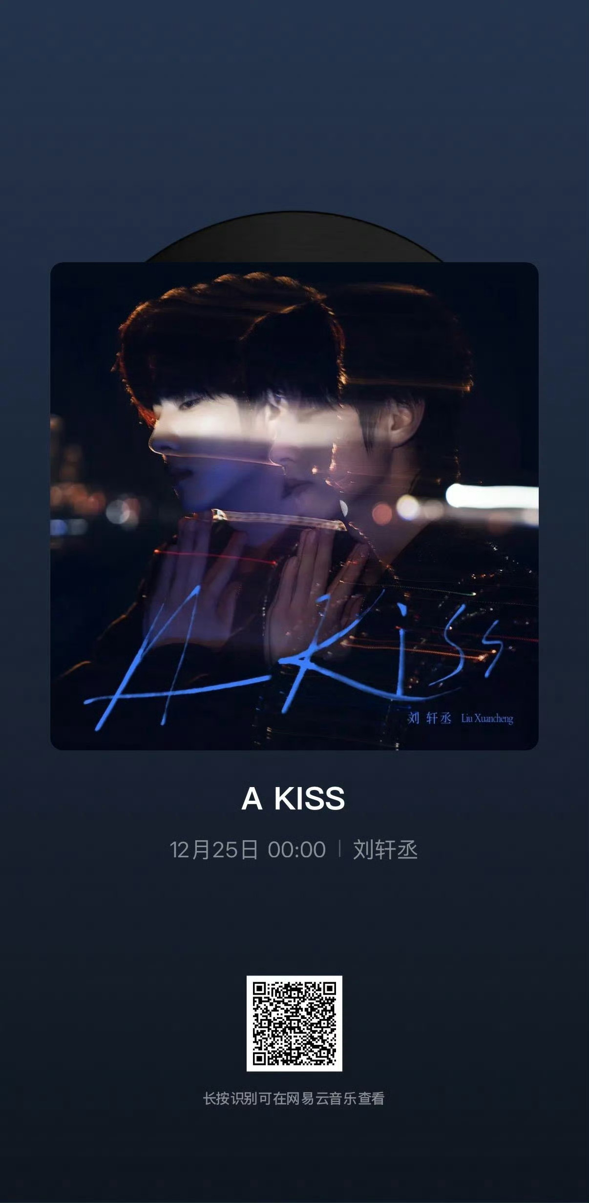 刘轩丞首支说唱单曲预热刘轩丞首支说唱单曲《AKiss》预热海报12月25日圣诞节