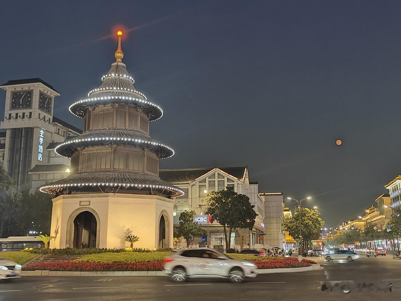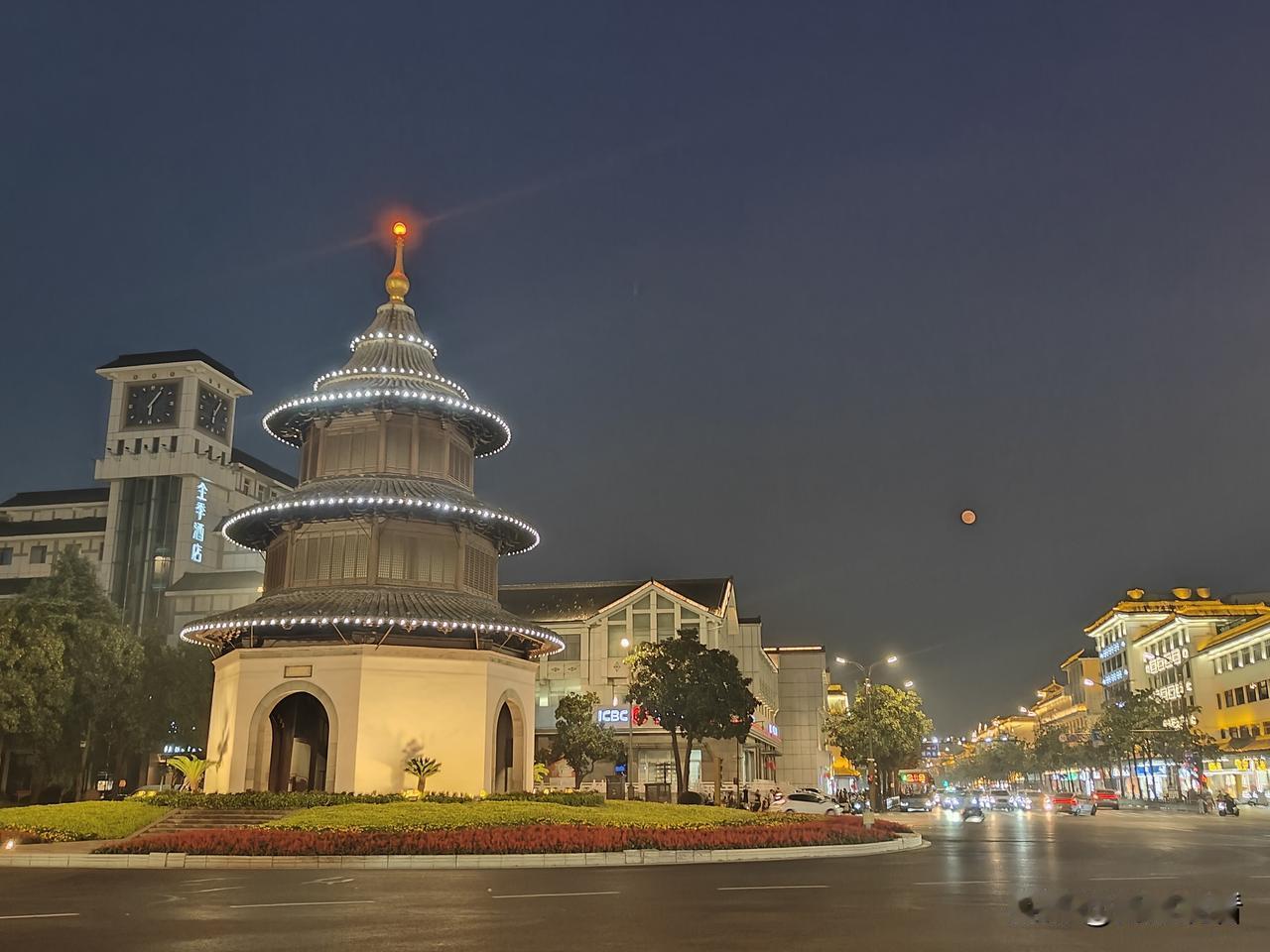 扬州文昌阁,月色如水倾泻朱檐黛瓦。飞檐翘角托着一轮朗月,晚风裹着桂香掠过,游人驻足,共赏这一城月色,半阙文昌。