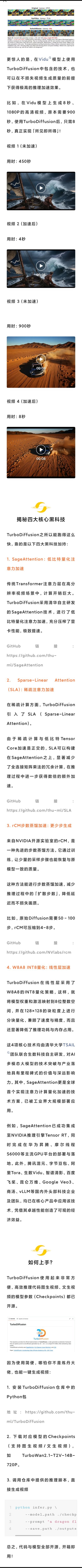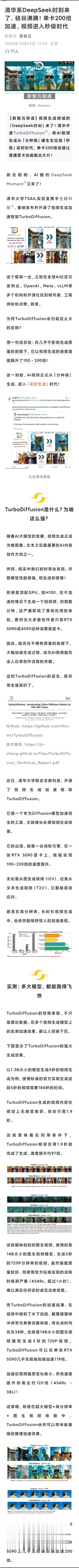 清华系DeepSeek时刻来了,硅谷沸腾!单卡200倍加速,视频进入秒级时代这个加速太厉害了,我是看不出加速生成的视频有什么区别。百倍加速一下就把视频生成变成实时的了,可能会把一些应用引爆。之前deepseek是语言模型加速,不涉及图像和视频。这个加速应该能推广到视频生成领域,等于让中国的GPU在视频场景一下算力暴增。这就是算法加速的威力。