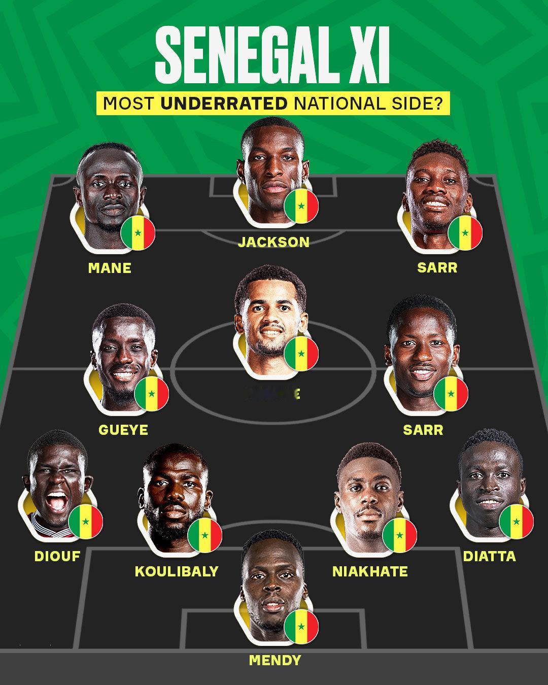【非洲杯夺冠热门】拥有多位英超现役球员和前英超球员的塞内加尔,在本届非洲杯,可以排出这样一个433首发阵容,有媒体认为他们是非洲杯整体实力最强的球队,你觉得呢?