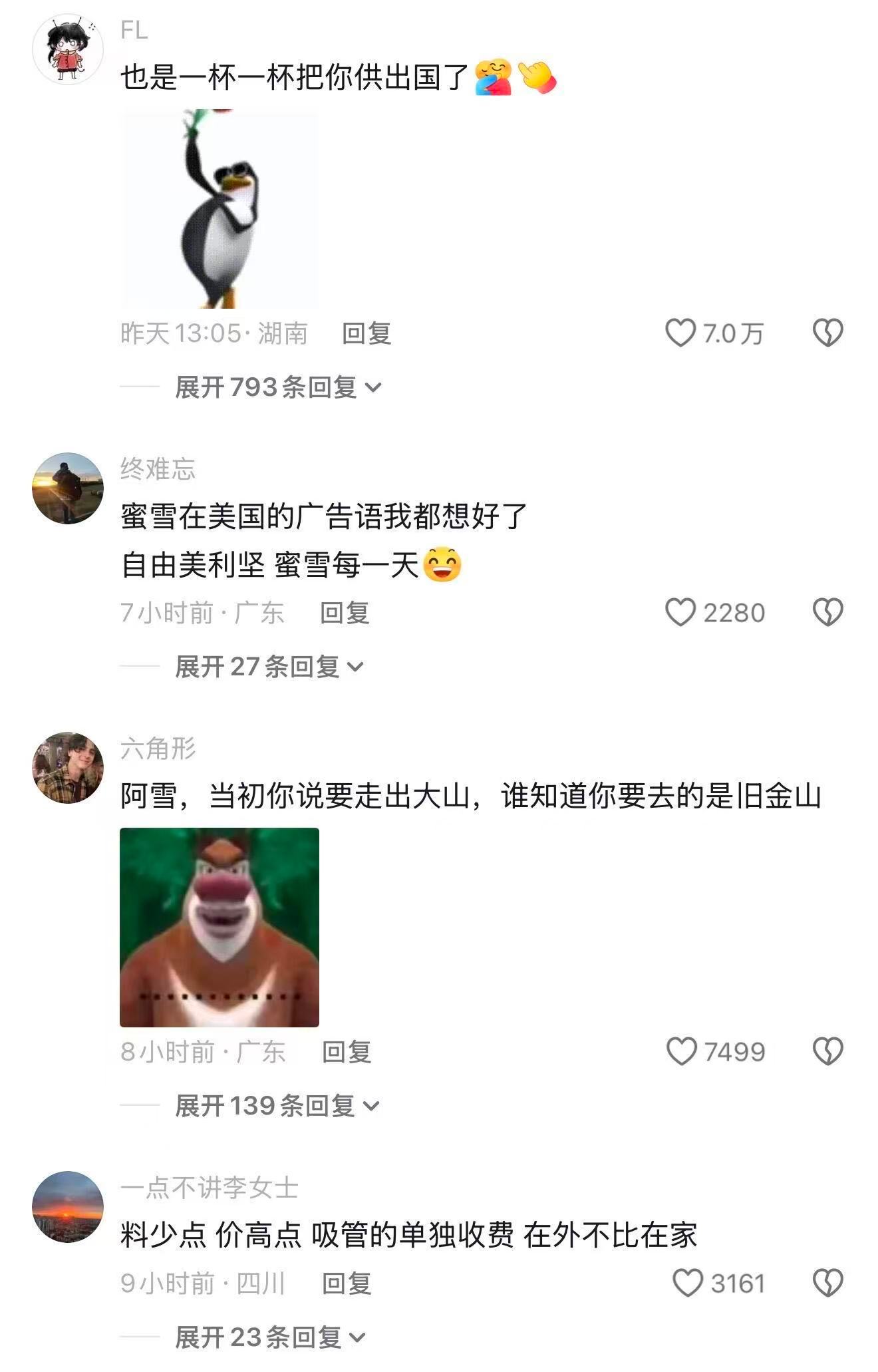 雪王开到美国 就像村里出了第一个大学生☃️
