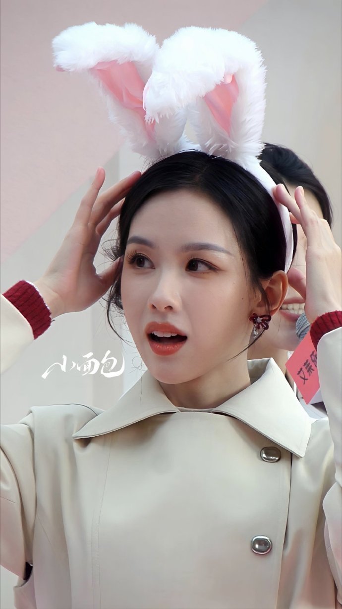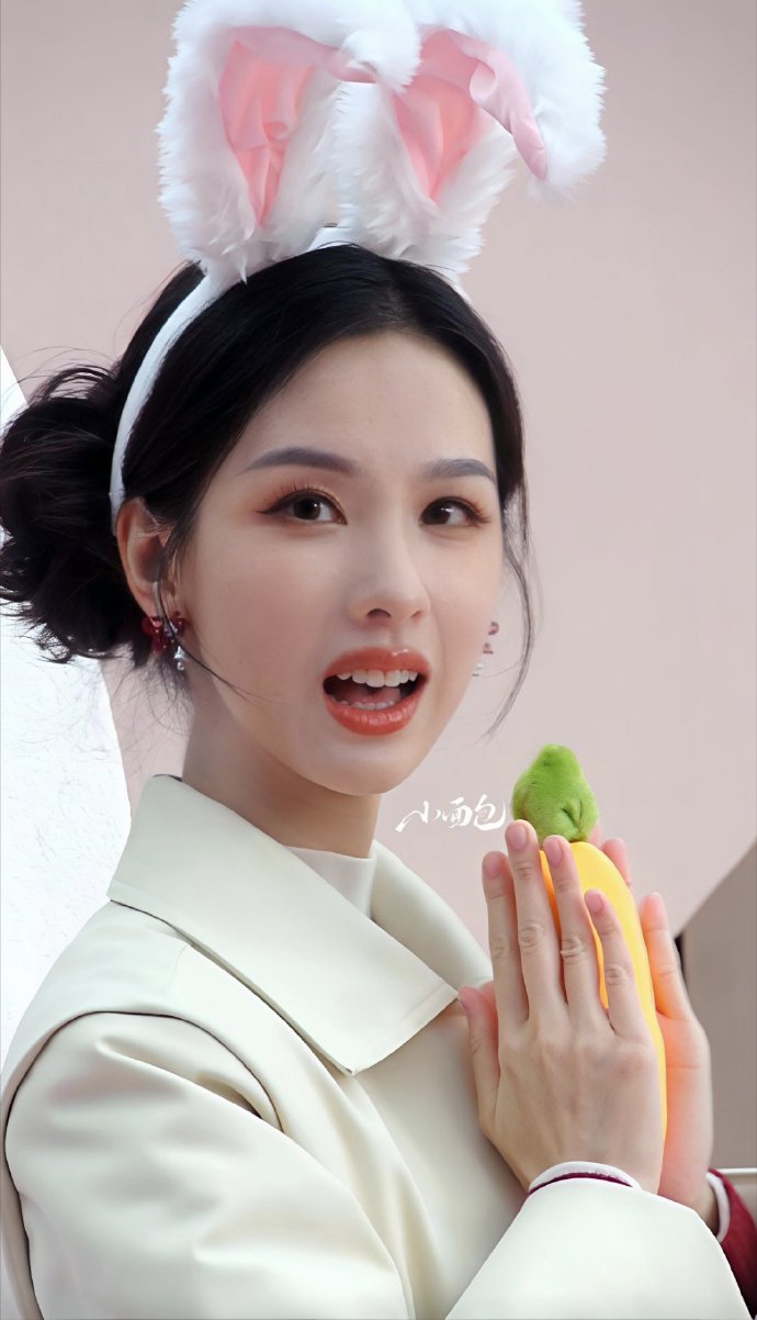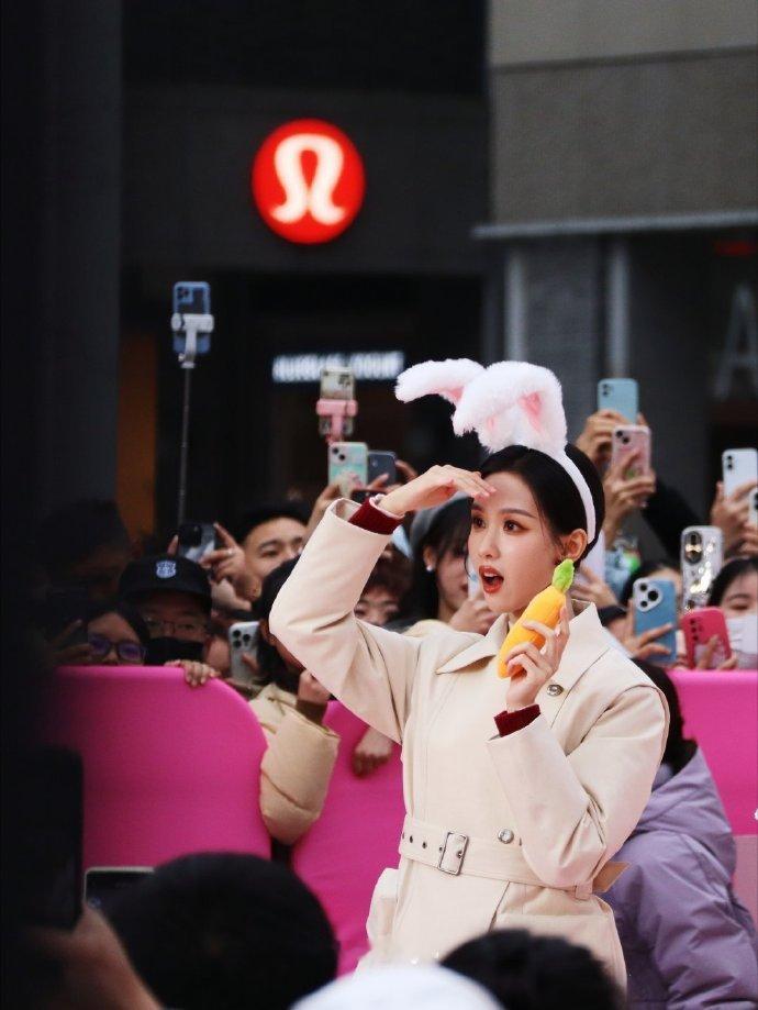 陈都灵今日线下活动戴了兔耳朵头饰!就这个美兔嘟嘟萌