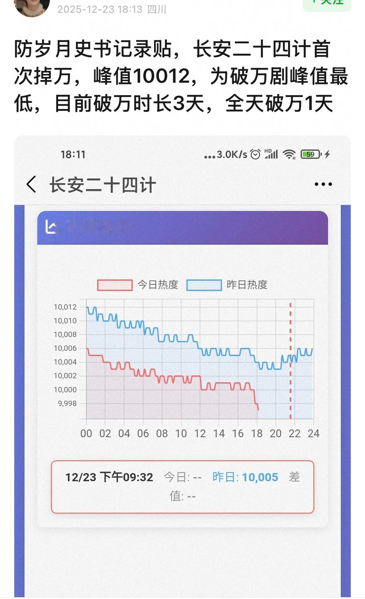 恭喜ee收获两个新的史冠,长安二十四计仅仅维持了1天全天破万,又创造了一个历史最低,优酷25年破万峰值最低史冠,破万剧破万天数倒数第一史冠☝️(破万速度倒数第三)(破万热度值倒数第一)