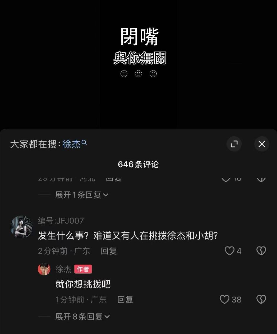 徐杰这是怎么了?五连胜后不开心反而心情抑郁,发文让无关的人闭嘴! 有球迷问是不是因为有人挑拨与小胡关系,徐杰直接回怼是你想挑拨吧,有人说是不是分手了?徐杰直接回复哈哈哈哈哈。 也有球迷爆料在广州打完比赛,广州现场球迷对他说了很不好的话,也有球迷s猜测是不想与庞峥麟做比较。 徐杰这种爱和球迷较劲的毛病与高诗岩差不多,总是太多情绪放在场下事情上可不是好事。