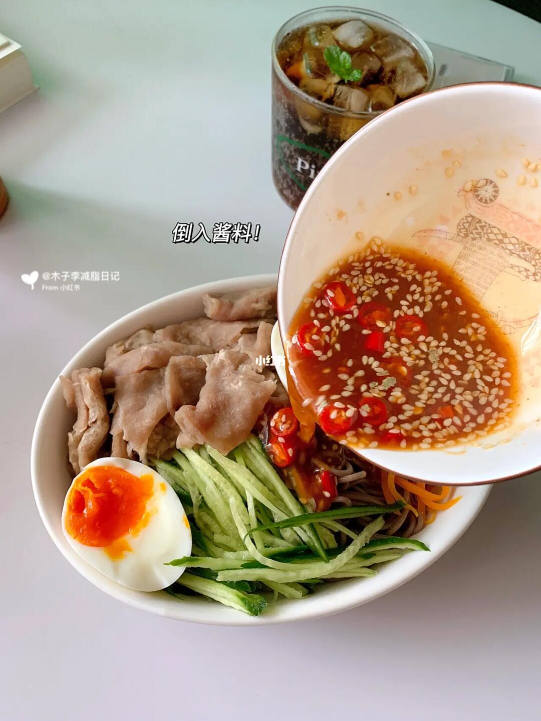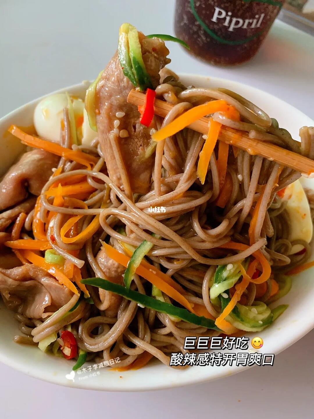 拌面的灵魂就是酱汁啦~今天调的酱汁加了两勺南逗蒜味辣椒酱,入口蒜味很香,里面还有柠檬香,酸中带着点辣~口感清爽有解腻!吃着太满足啦~低卡好吃不胖的拌面快去做呀~