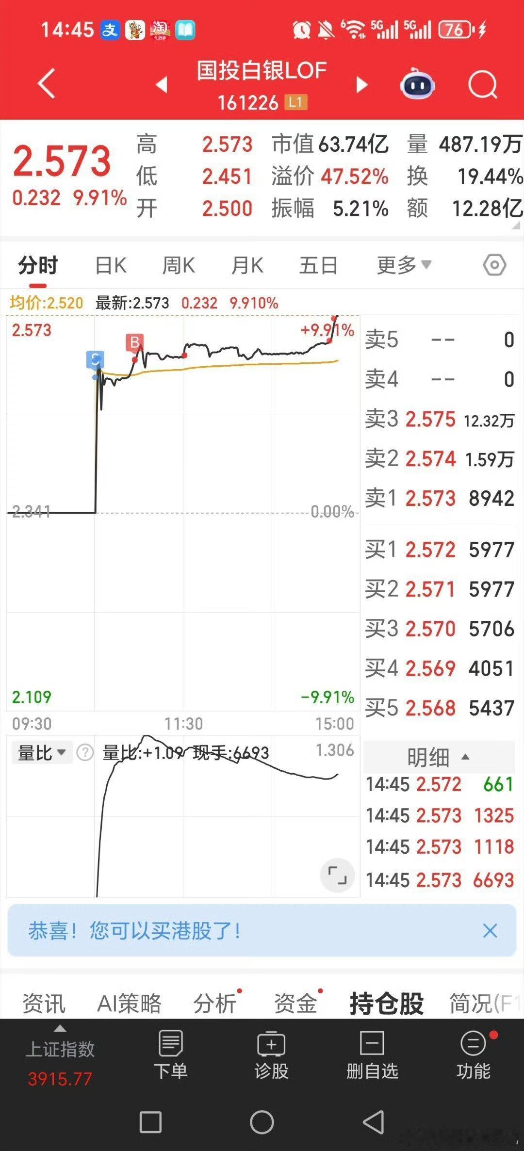 新目标接着提!!!上一个策略是国投白银lof!!四月涨了八个涨停,今天高开不是太
