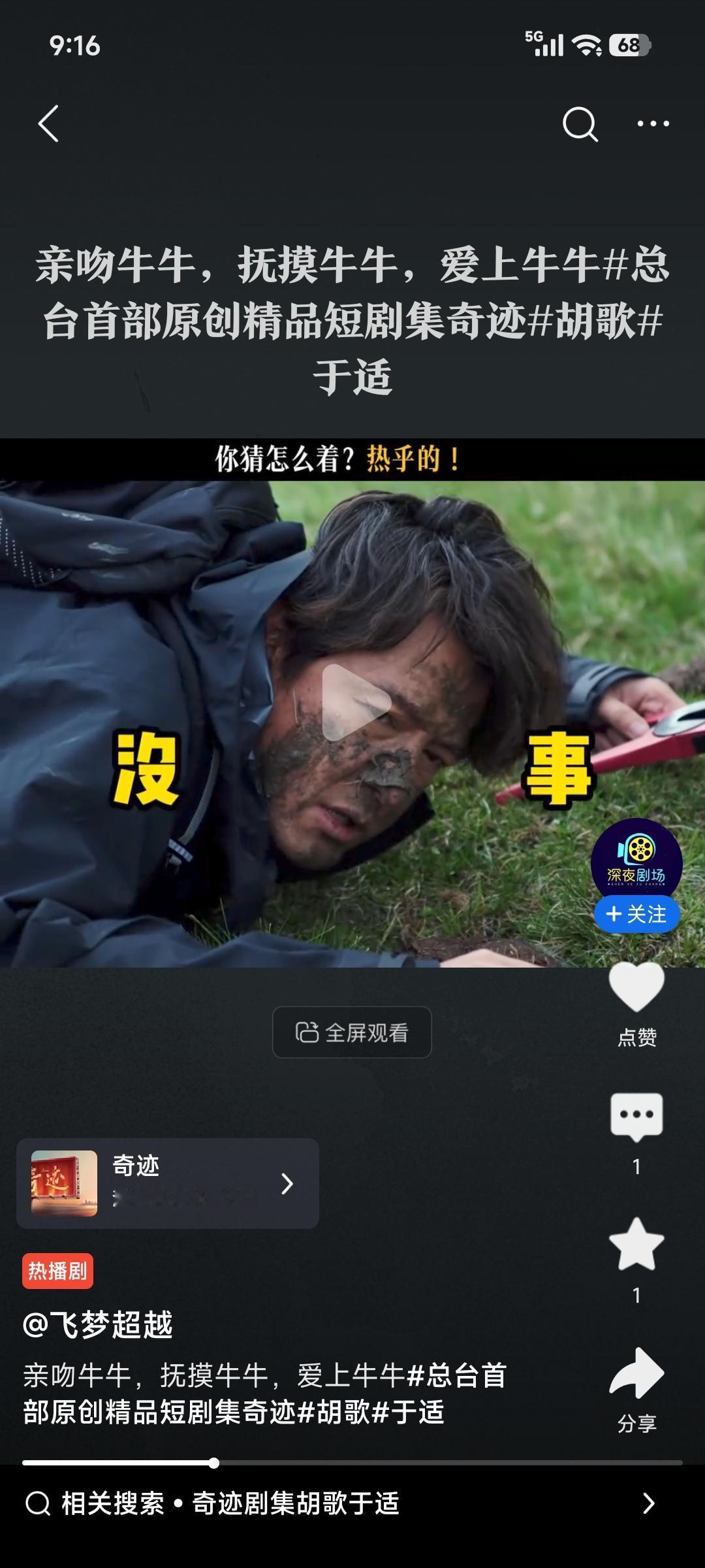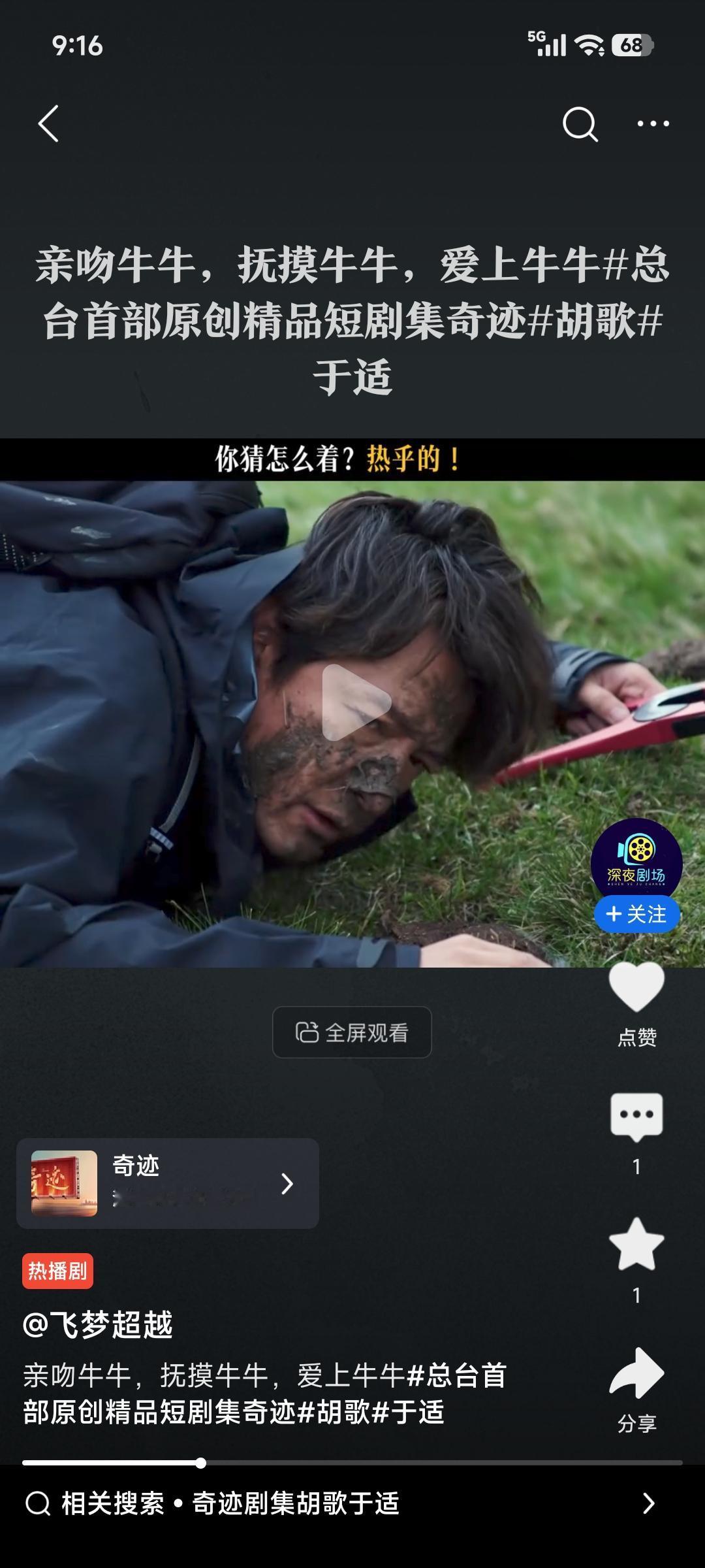 胡歌在《奇迹·牛牛》单元这“亲吻”牛粪的情节,可太有梗了,直接被观众调侃“短剧生涯首吻献给牛粪”。不得不说,胡歌这为艺术真是“拼了”。在剧中他肯定是全身心投入角色,才会有这么“接地气”的一幕。这也让我们看到了他作为演员的敬业和对不同角色的大胆尝试。就像很多演员为了塑造好角色会有各种突破,胡歌这次的“吻牛粪”说不定会成为他演艺生涯里一个特别的记忆点,也给观众留下了深刻又搞笑的印象,说不定之后会成为大家茶余饭后的欢乐谈资呢。