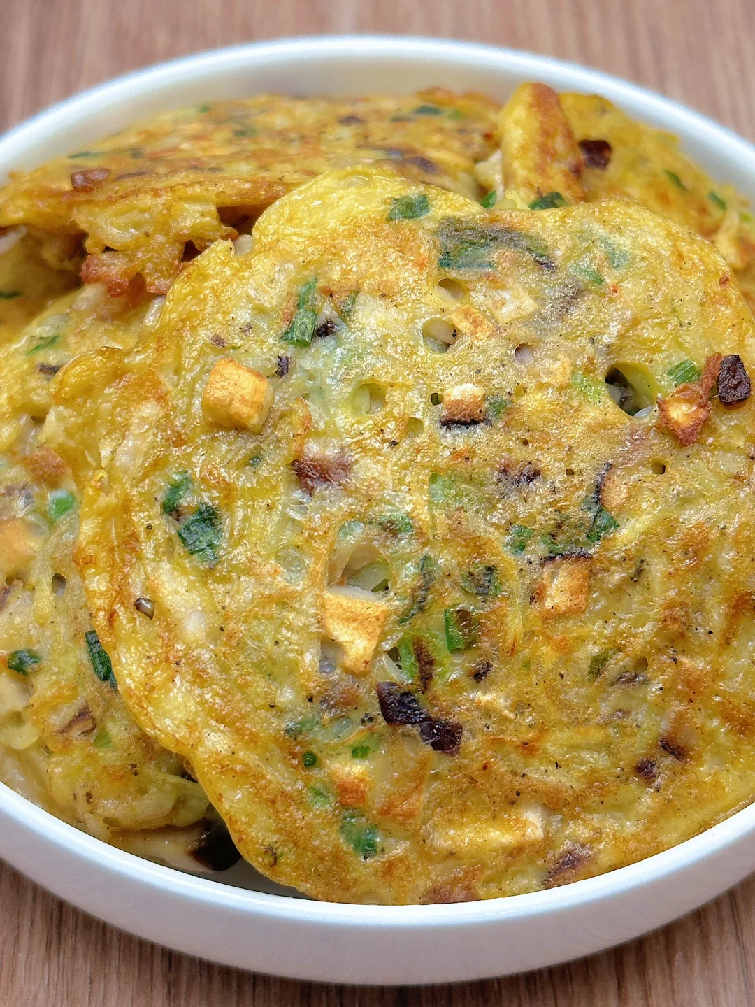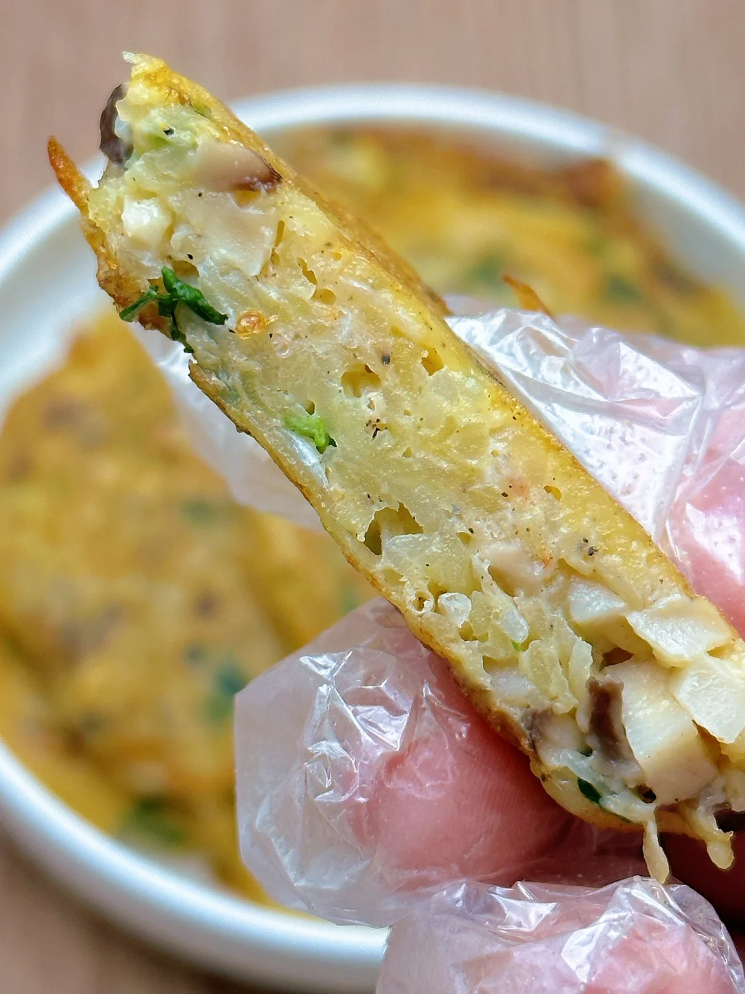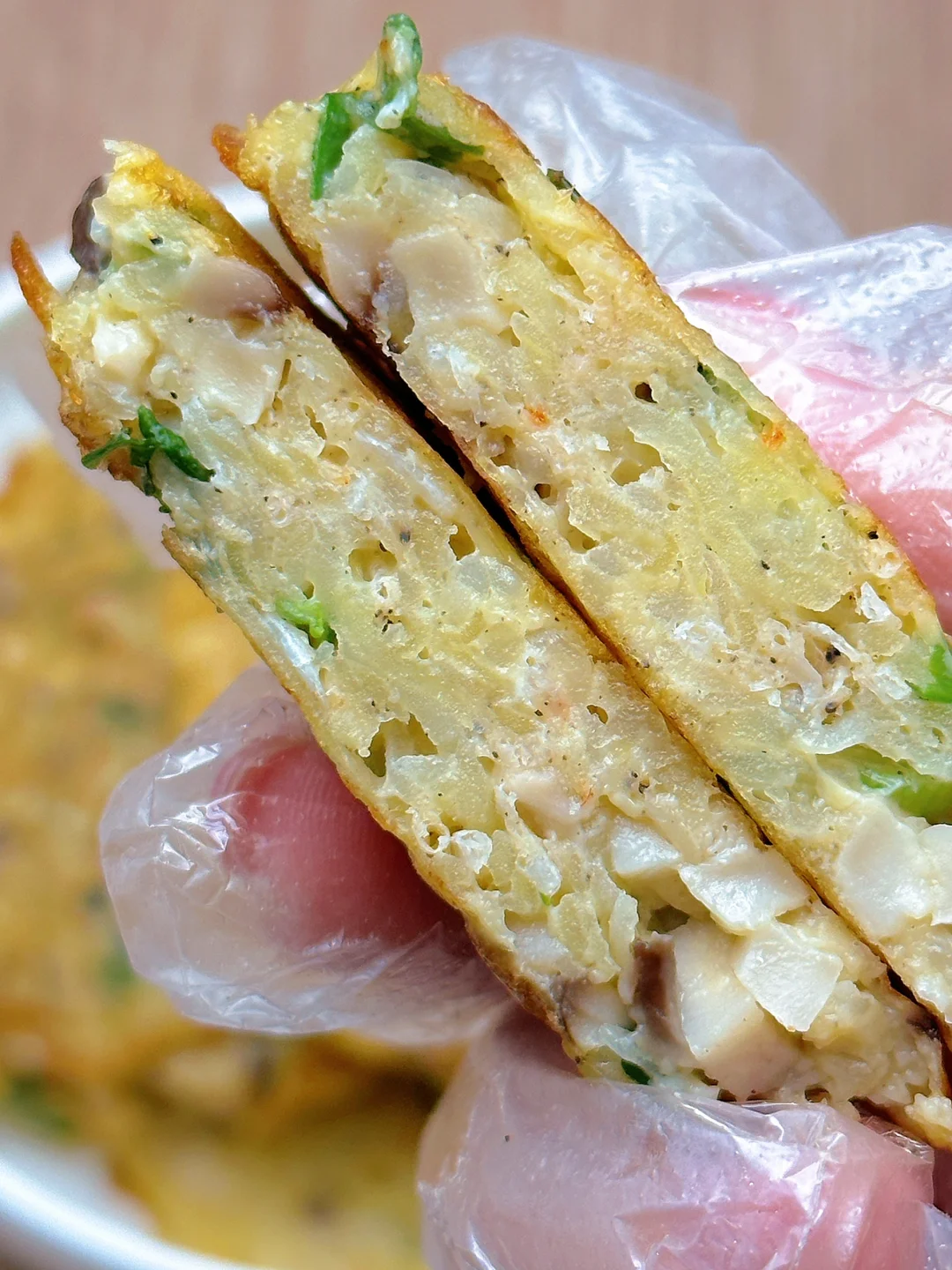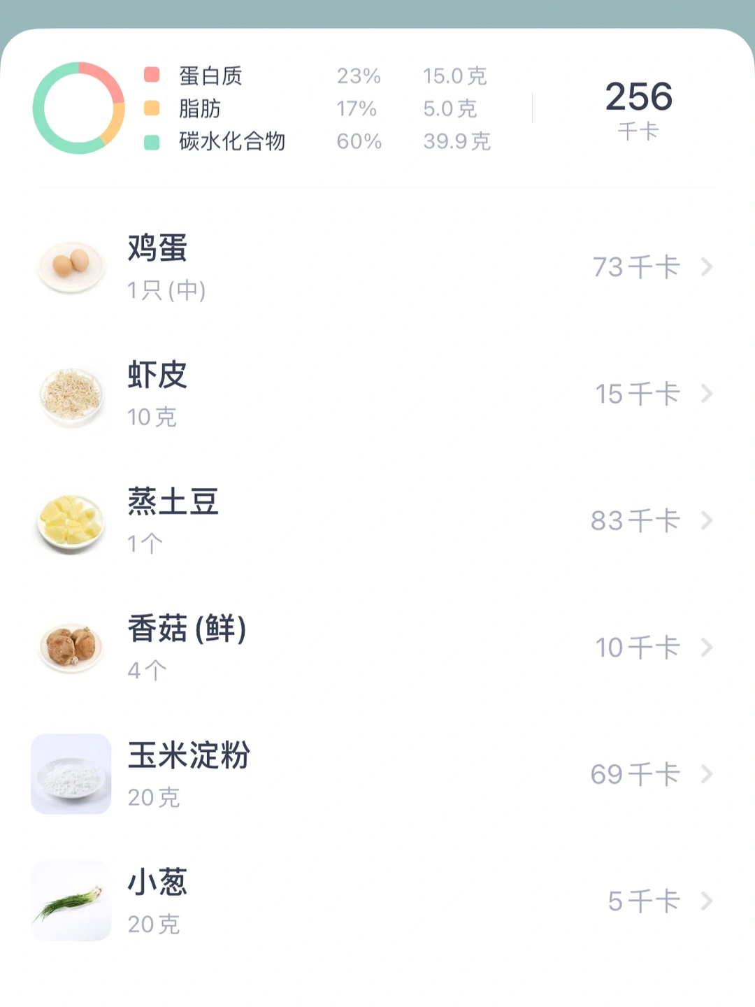 🥗食材:虾皮、土豆、香菇、葱花、淀粉、鸡蛋