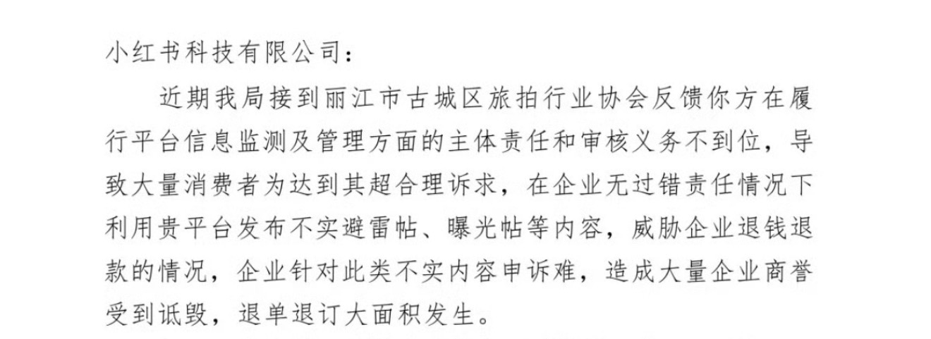 丽江公开发函喊话小红书吗呀,虽然不经审核会有一些无脑避雷帖……但大家都有判断啊……旅游避雷帖还不能发了,好霸道…